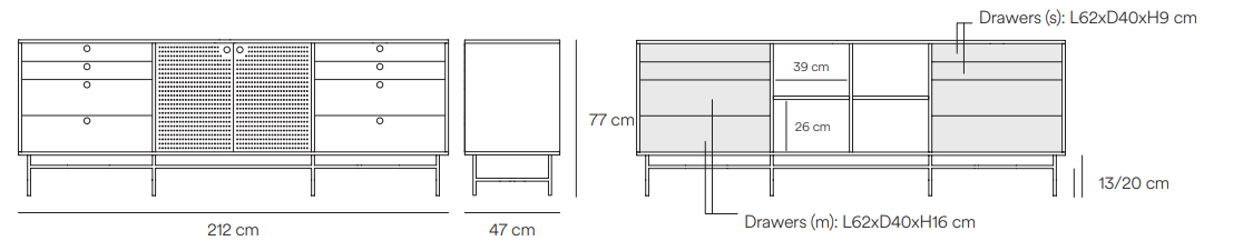 Perforated metal doors give it a unique character and personality. The timeless shape means that Punto can be both dresser kitchenand as and as dresser to the dining room or living room. The elegant white color emphasizes the loft climate of the cabinet.