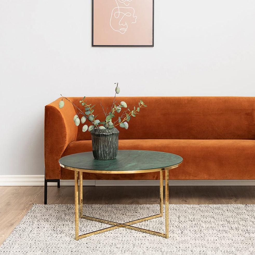 Round coffee table Alismma Green Glass with a golden base
