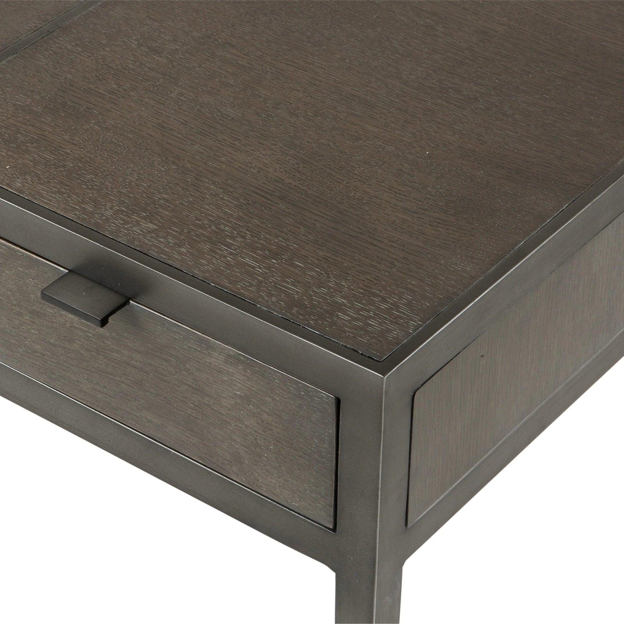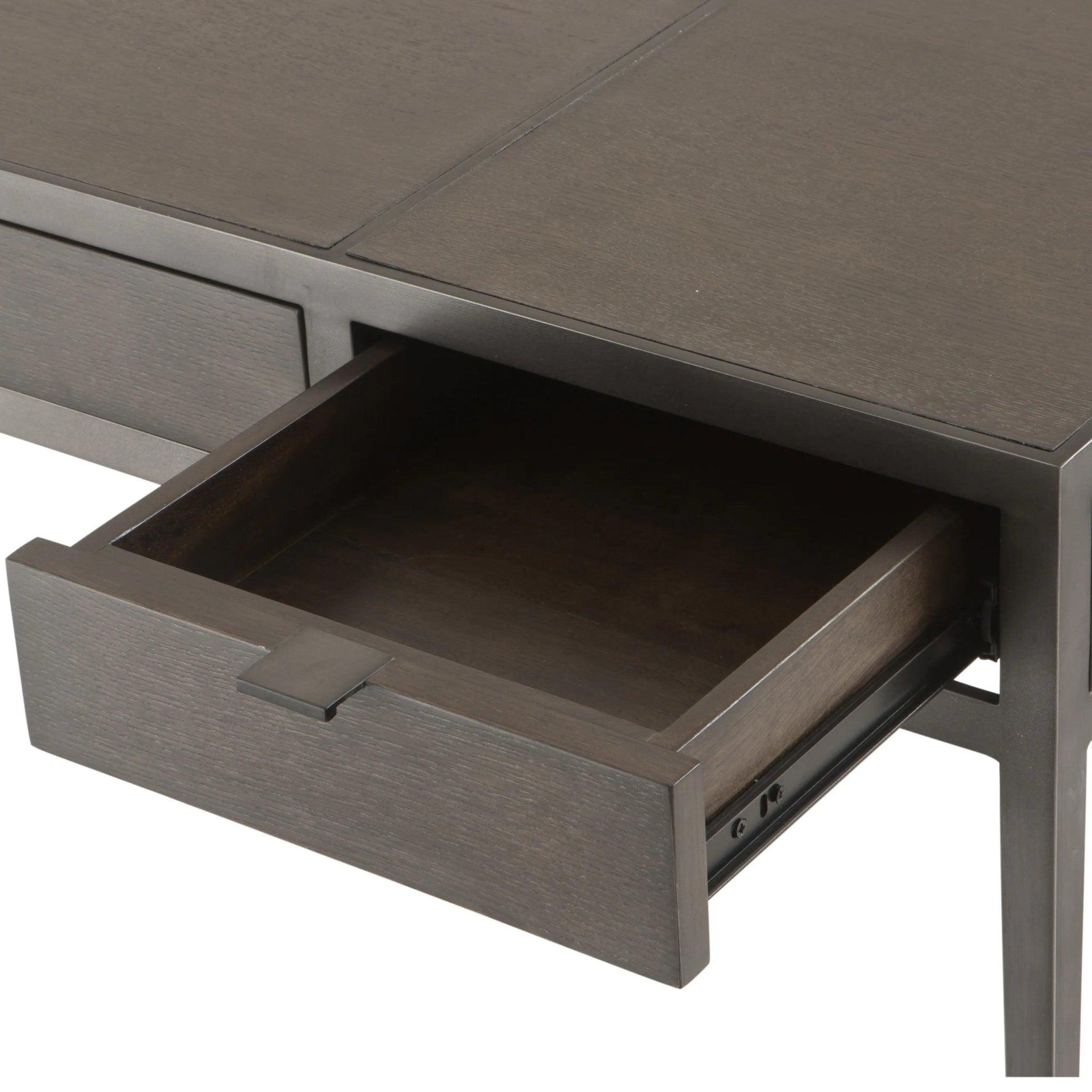 Desk Scavullo is the quintessence of an industrial style that combines rawness with elegance. His oak veneer in a deep shade of charcoal adds character and authenticity, creating the perfect background for three practical drawers. These drawers not only offer enough space to store all your necessary office items, but also emphasize the industrial character of the desk.