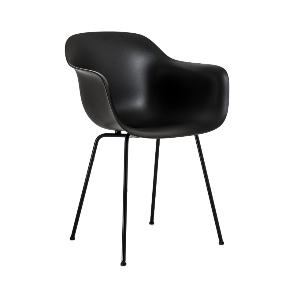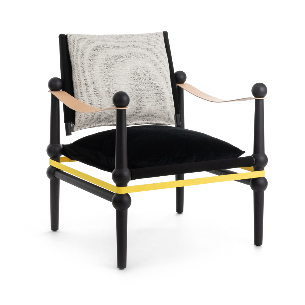TWAIN armchair with a brown-blue blanket and a black beech base