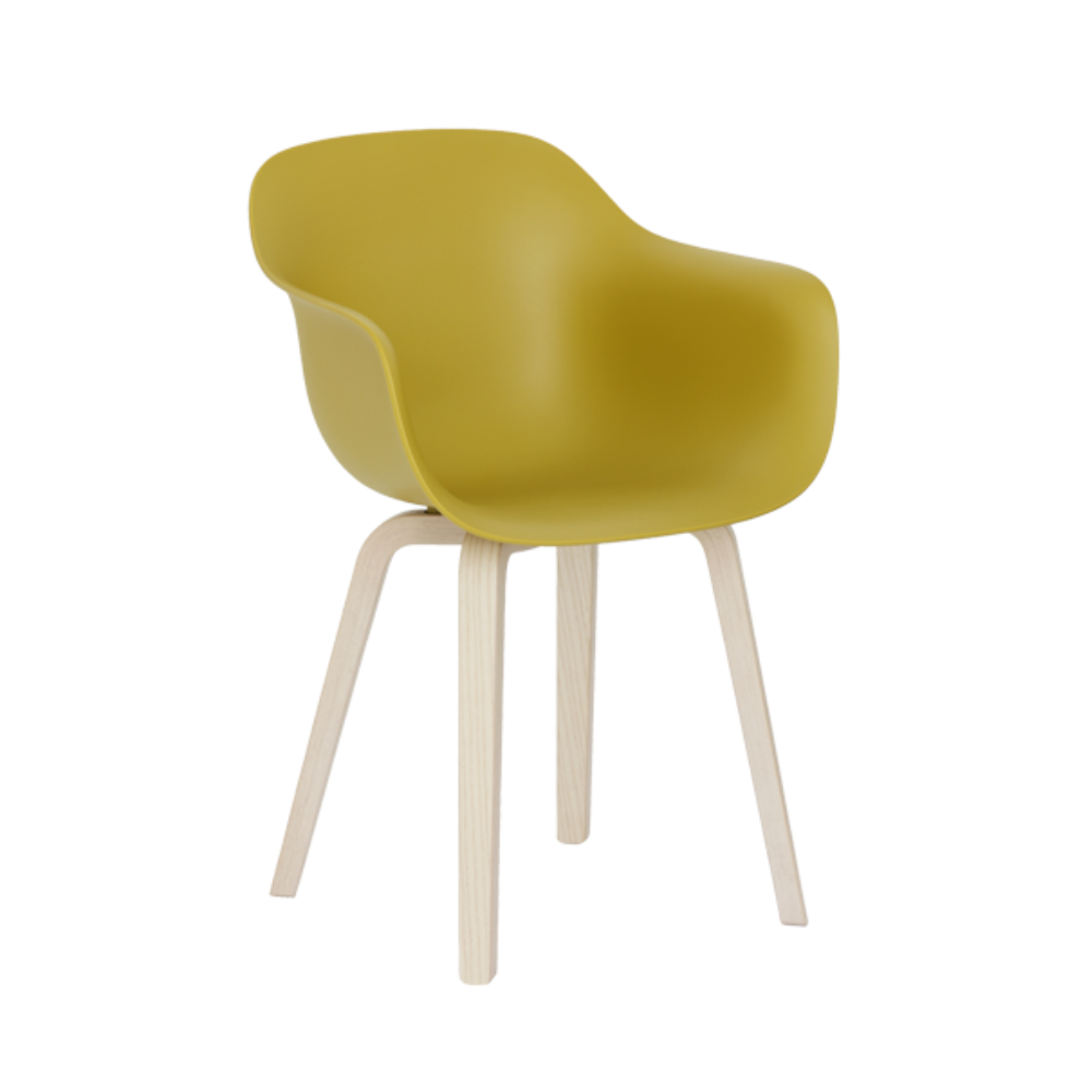 TWAIN armchair with a brown-purple blanket and a light beech base