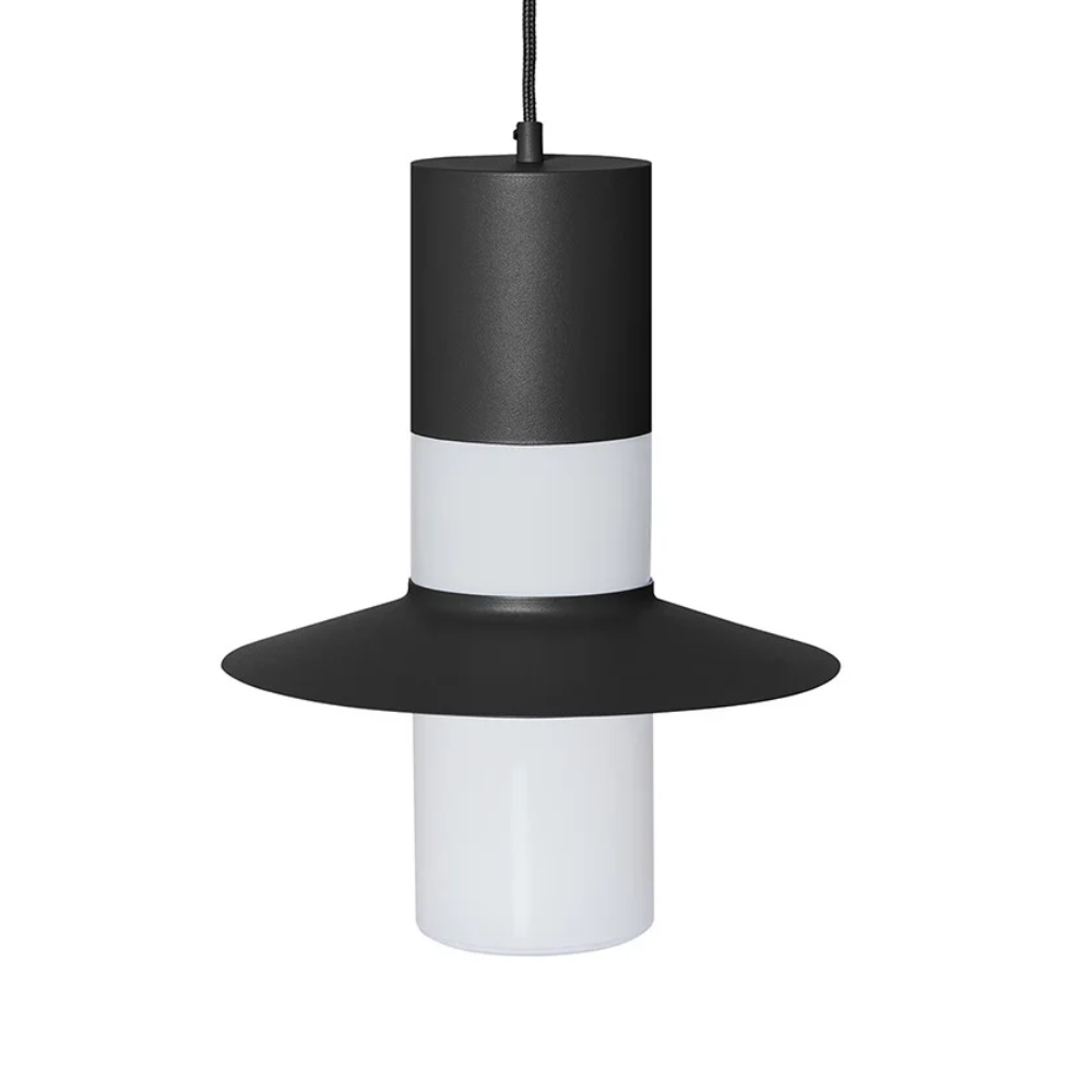 FLUMINA pendant lamp with ribbed glass and black ash wood