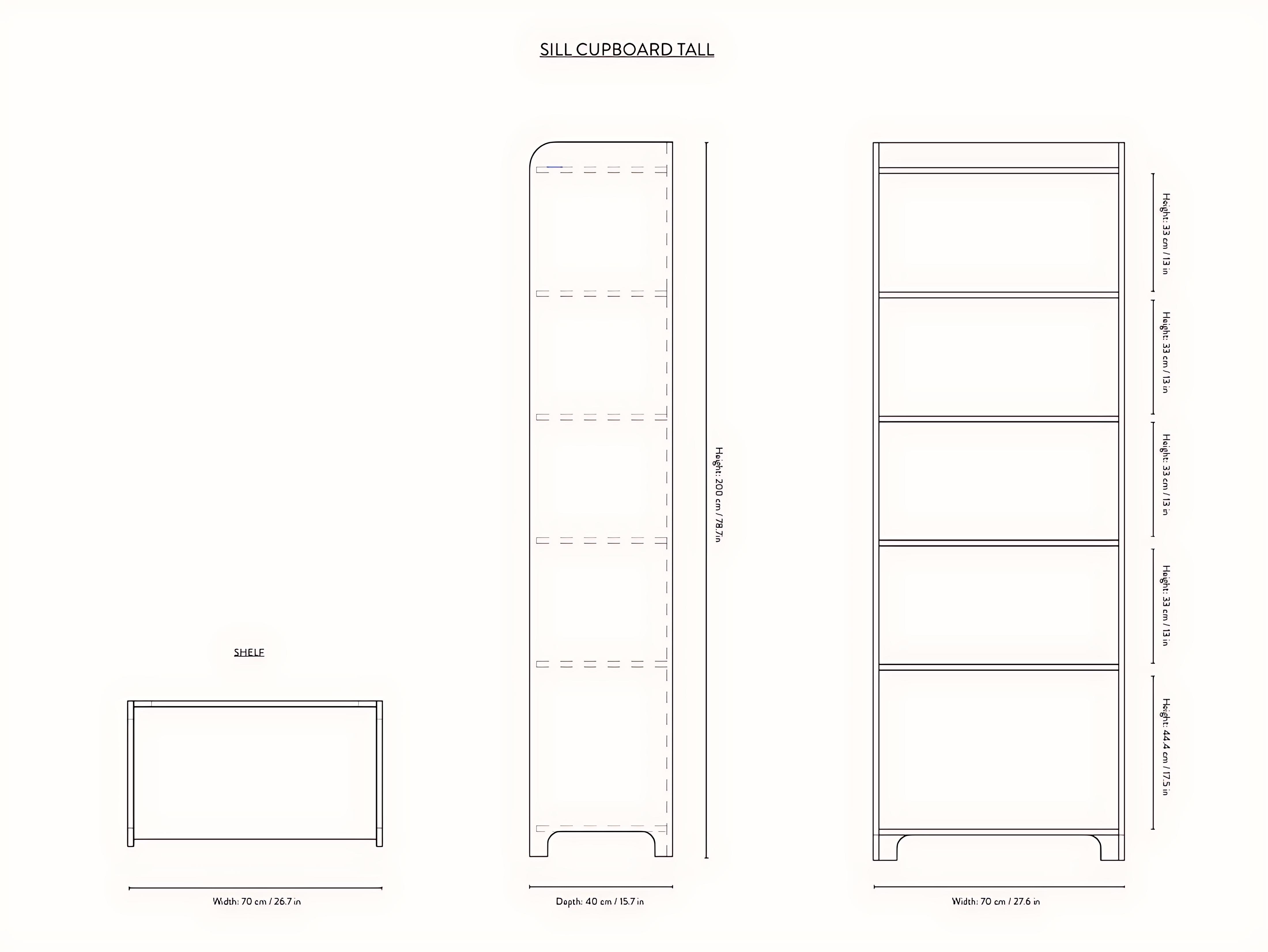 Sill wardrobe is an elegant and slender storage option, crafted from FSC™ Mix certified oak plywood with an MDF core. The name "Sill" is derived from the French word sillon, which means carved grooves that adorn the wardrobe doors, giving it a unique character. With its tall design and wide shelves, the wardrobe is perfect for a children's room, hallway, bedroom, or office. The shelves are high enough to accommodate notebooks and binders, making it a functional solution for storing documents and other items.