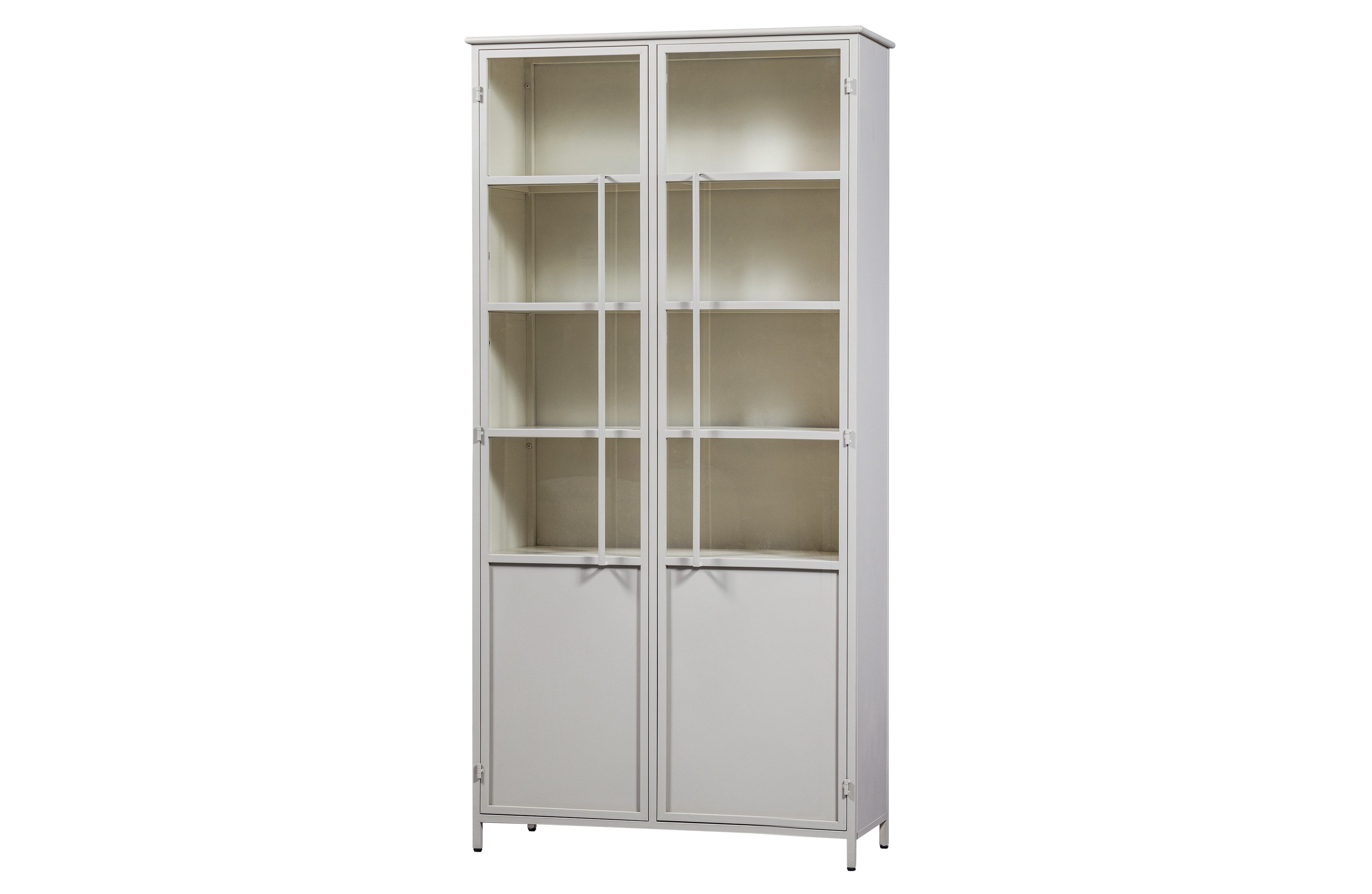 The Exhibit is a solid, metal display cabinet with a modern look, perfect for serving as a functional showcase in your living room, dining area, or office. Made entirely of metal and finished with a trendy, matte powder coating, it ensures durability, elegance, and resistance to everyday use. The glass doors and metal shelves provide ample space for decorations, books, or ceramics.