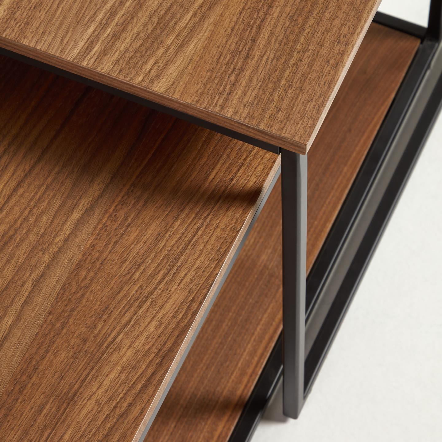 A set of Yoana Walnum Veneer coffee tables with a black frame