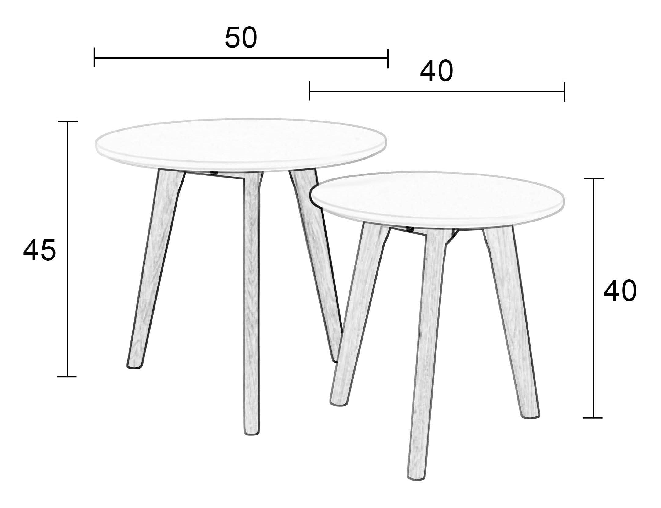 A set of two tables Bodine is a charming furniture that will introduce a unique character into any interior. Tables They delight with careful performance and refined project, which makes them an ideal choice for people who value simple but elegant solutions. They can be used as coffee tables or as decorative elements in a modern living room. The design of each table consists of a thin, round countertop made of MDF and oak legs.