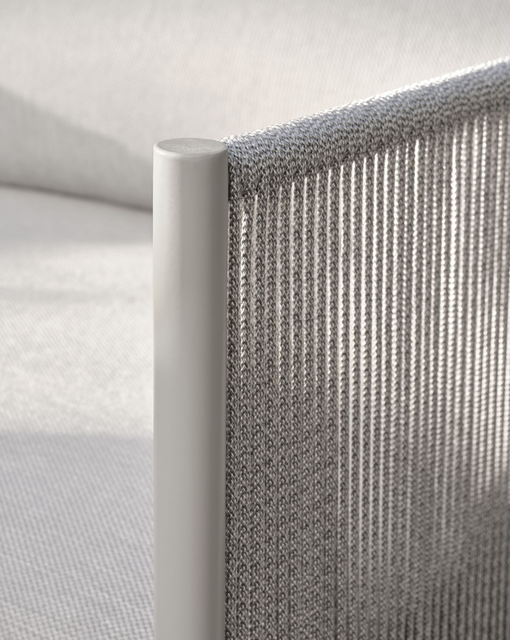 Outer sofa TRACK is an elegant proposition for luxurious leisure in the open air. The construction is based on a solid, linear metal frame, in which soft, upholstered pillows are placed to ensure unique comfort. One of the most sophisticated elements of the project are armrests, hand -wrapped with a string, which not only adds lightness and style, but also protects the metal, which can heat up in the sun or cool at low temperatures. Thanks to this innovative construction sofa It looks extremely elegant, and its details create beautiful shadows in a natural light.