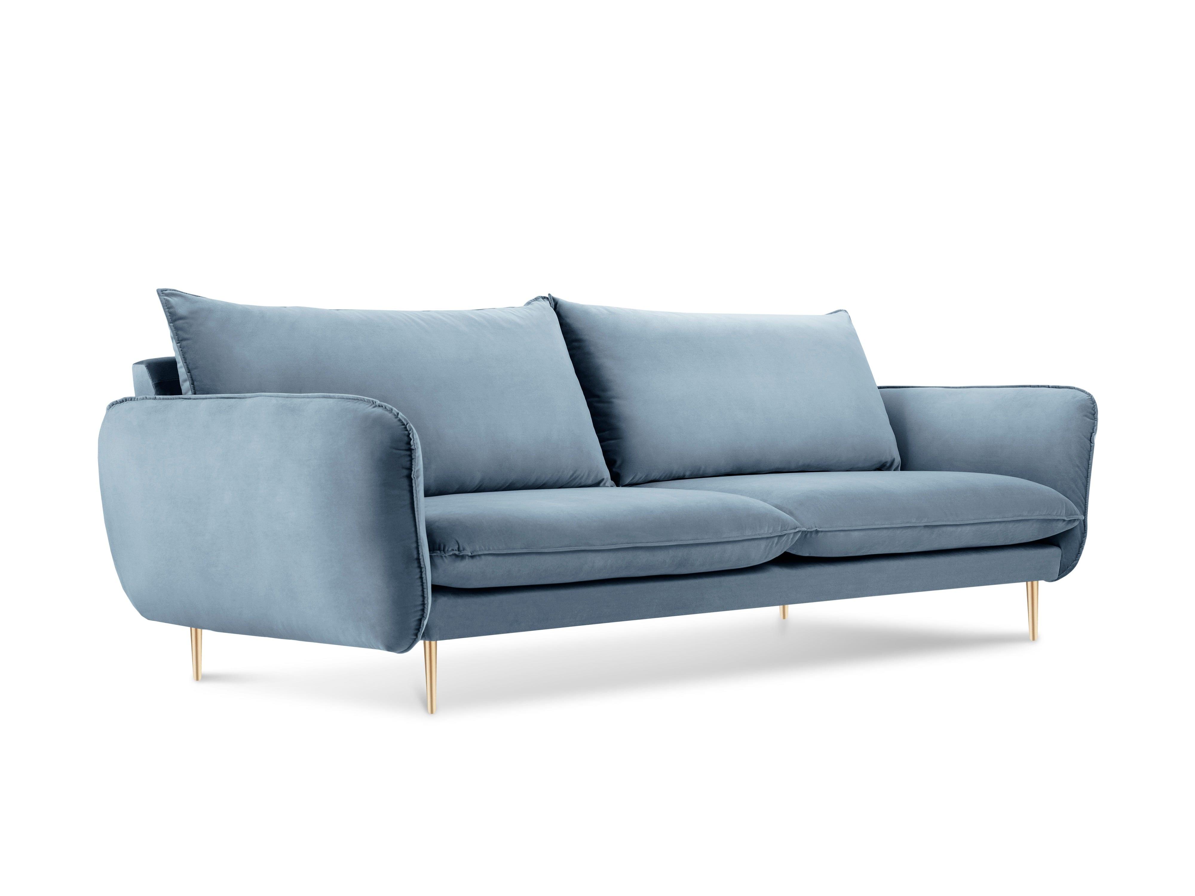 3-seater Vienna light blue sofa with a golden base