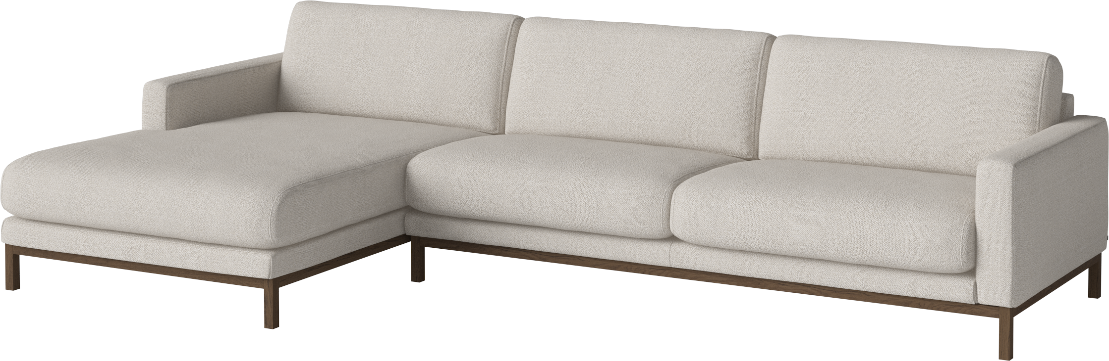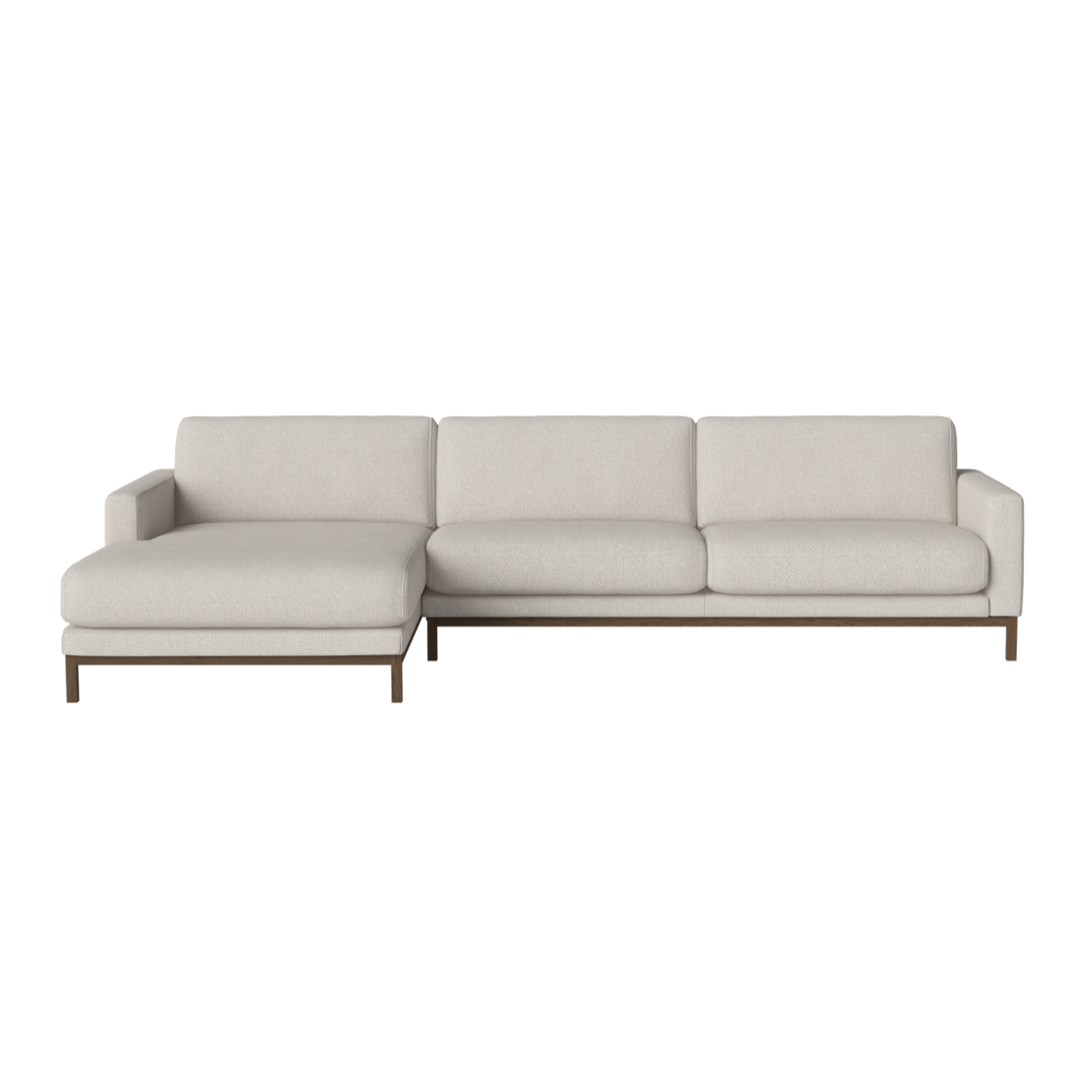 A corner with left -hand chaise North with a dark oak base is a sophisticated piece of furniture that combines modern elegance with maximum comfort. Its simple, harmonious form perfectly fits into modern and classic interior arrangements, adding subtle luxury to them.