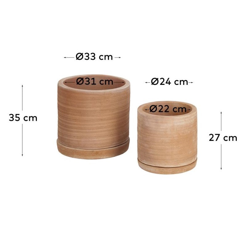 The Karlina Pot Set is an essential element for your plants, providing them with excellent protection outdoors. Made from terracotta, these pots are not only durable and weather-resistant but also maintain the natural ambiance of your spaces. Terracotta, as a mineral material, ensures optimal conditions for plants, promoting their healthy growth and development. With the terracotta pot set Karlina, you can enjoy the beauty of your plants both indoors and outdoors, without worrying about their condition. The elegant design and sturdy construction make these pots a perfect match for various spatial arrangements, adding a touch of refined charm.