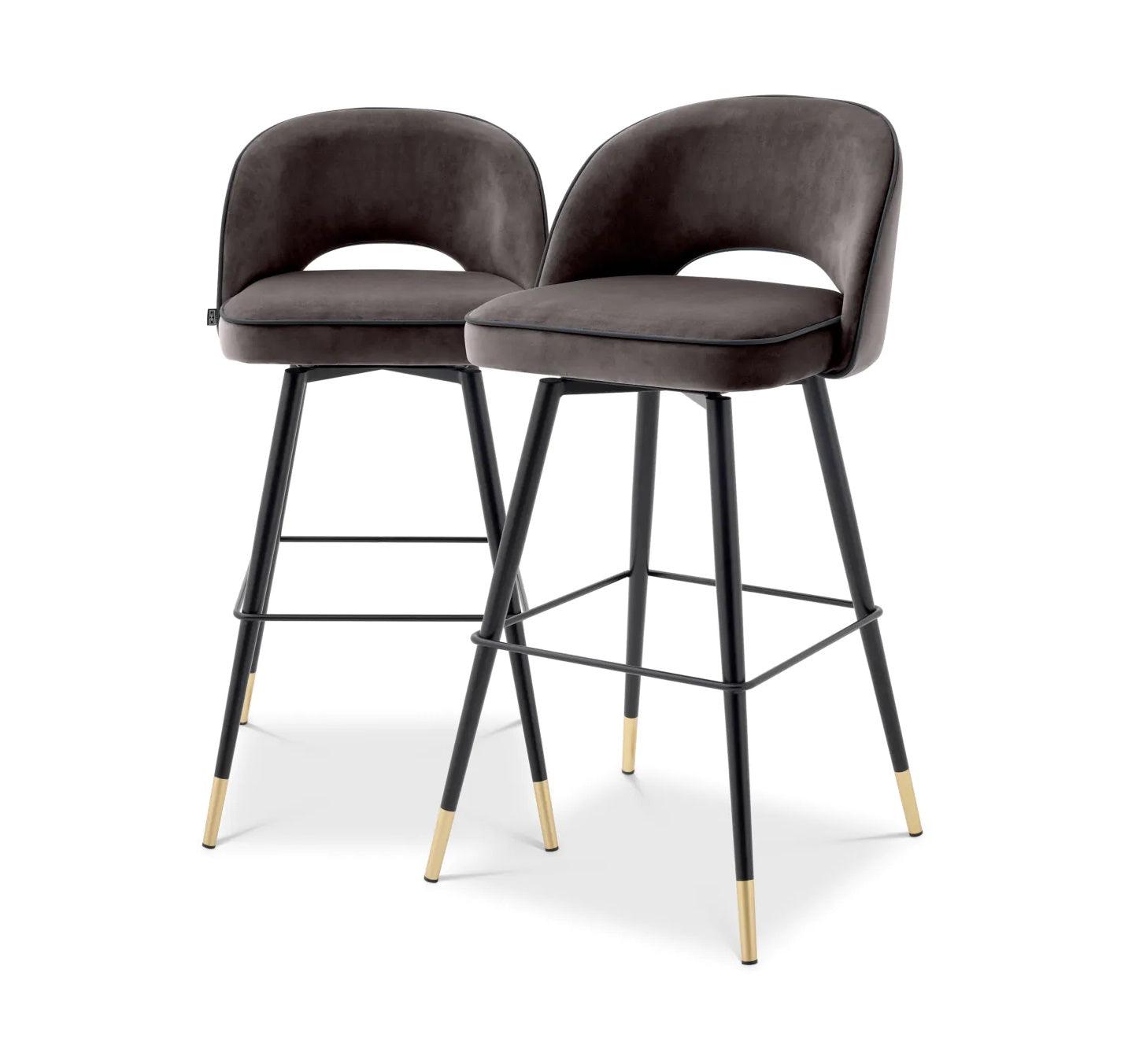 Take care of elegance and sophistication of your interior thanks hockers Cliff. Two set velvet hokers It is the essence of luxury and class. Everyone gray hoker It has a solid frame that is based on black, narrowed legs with a perfect accent in the form of golden overlays. Their uniqueness emphasizes the shoulderless support, which was artistically open at the bottom before the seat, adding lightness to the design.