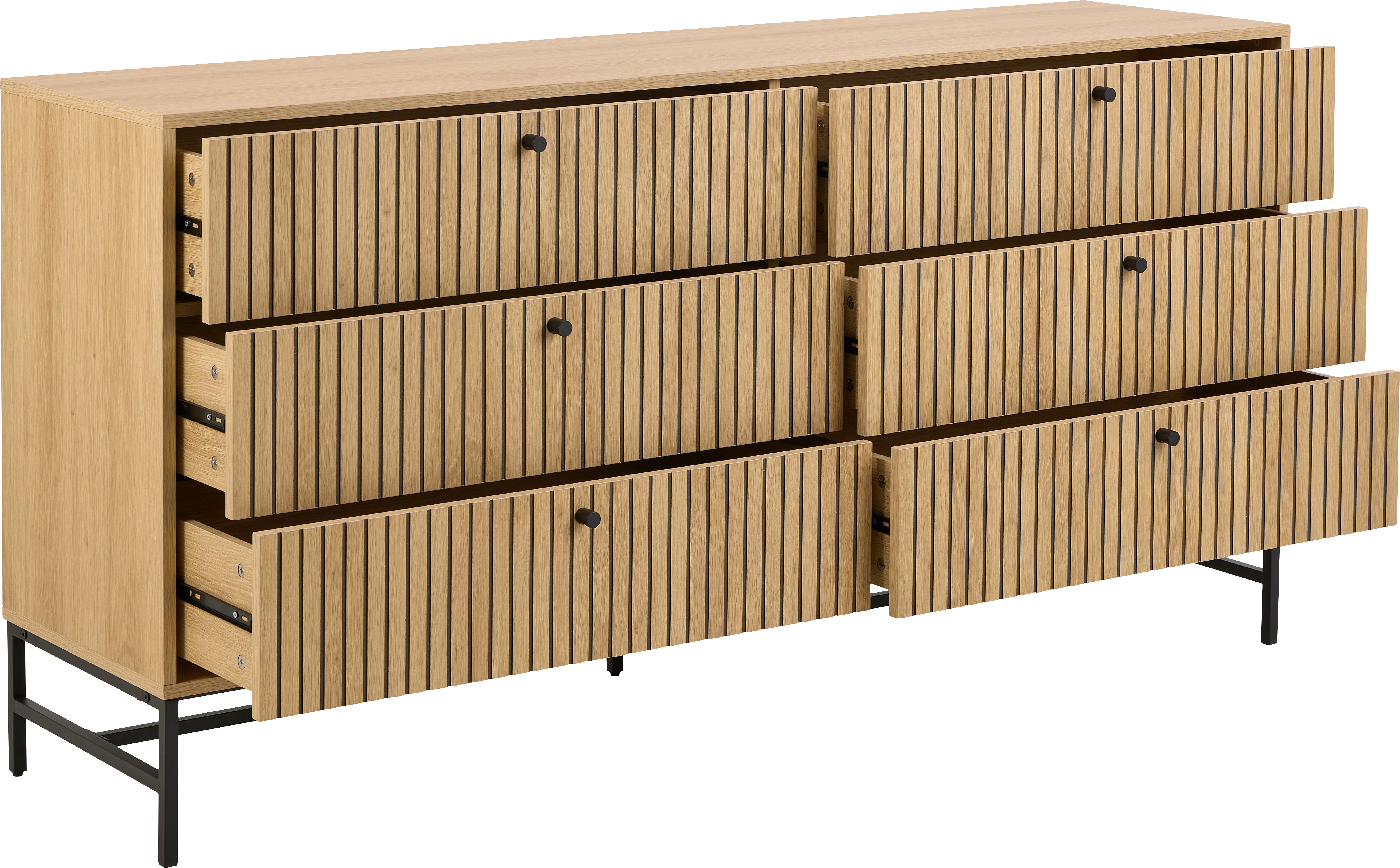 The chest of drawers is equipped with six capacious drawers that provide a lot of storage space. An easy -to -care surface increases its practicality, and a solid base from matt, black powder -painted steel guarantees stability and durability of the furniture. This is an excellent choice for the living room, bedroom or hallway, where the elegant appearance and functionality go hand in hand.