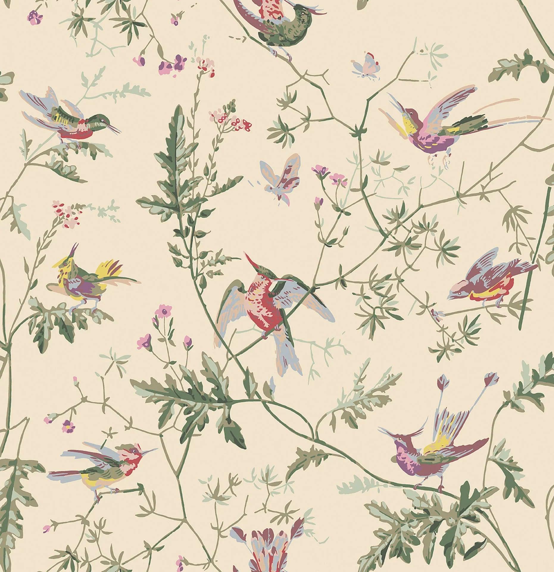 Archive Anthology wallpaper - olive hummingbirds on cream