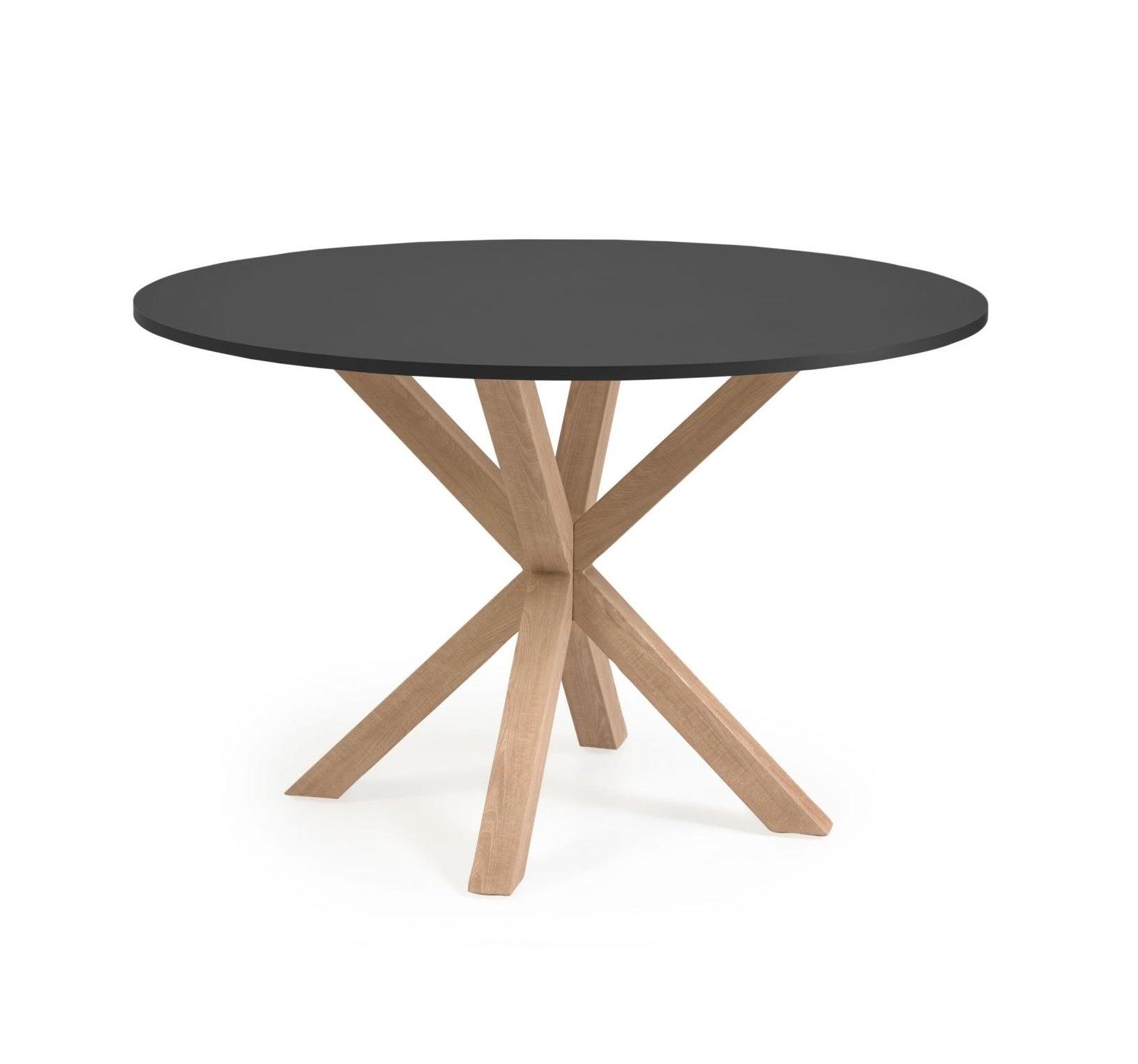 Argo Black Round Table with a base imitating wood