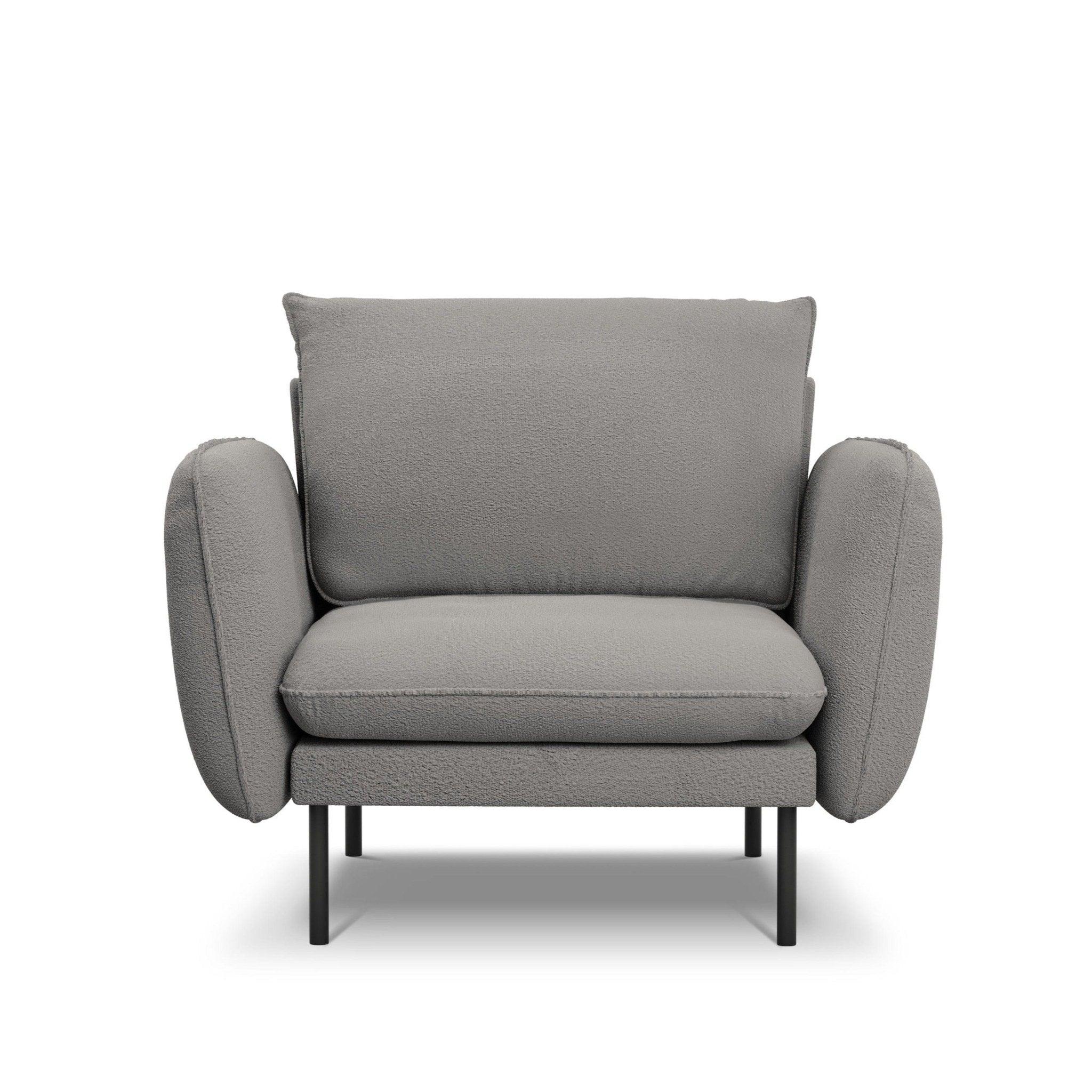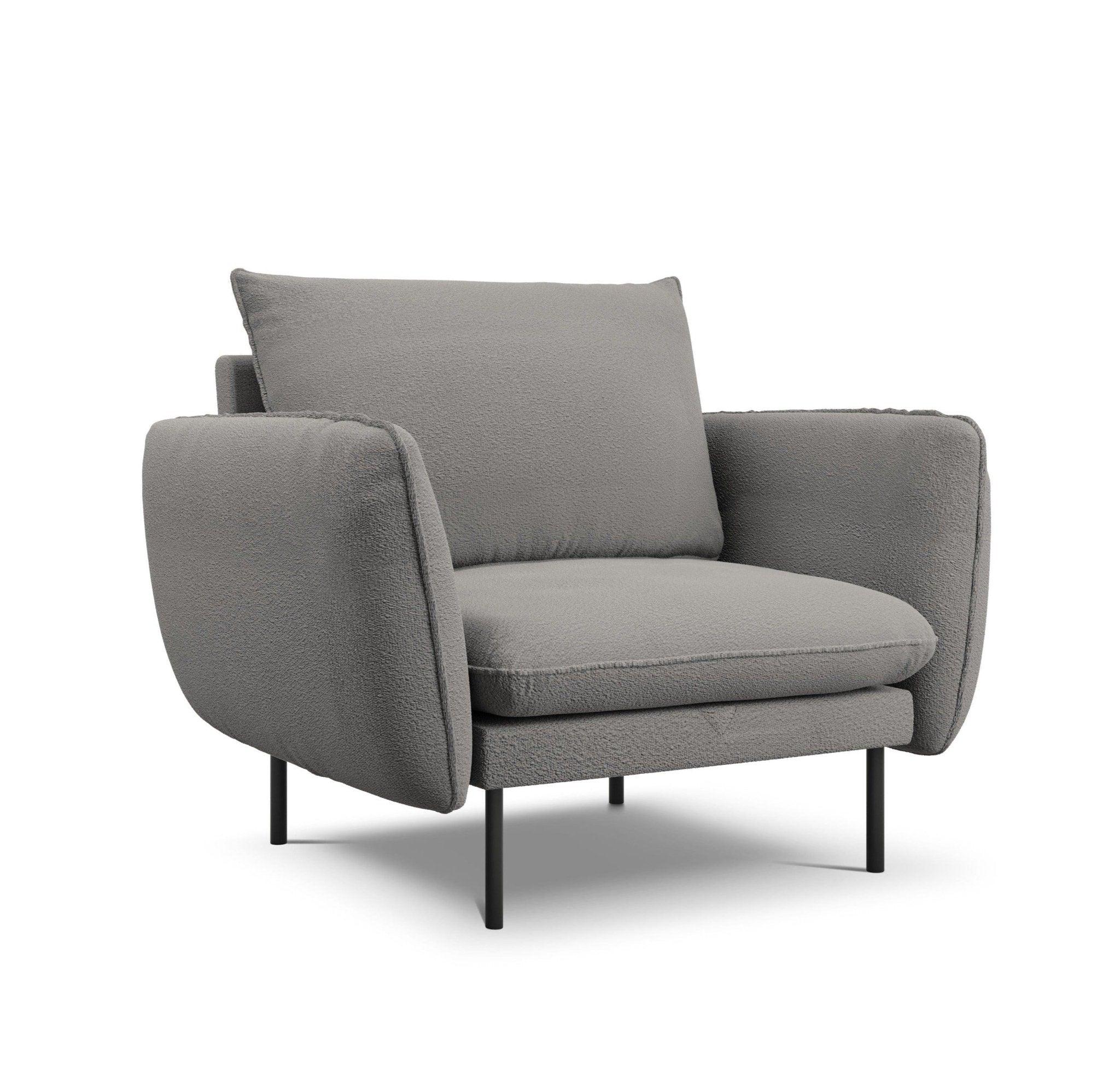 Armchair in Boucle Vienna Gray Fabric with a black base