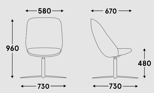 High -back armchair A parallel with a rotating flat base is the perfect combination of comfort and modern design. Designers from Yonoh Studio have created an armchair that offers a sense of privacy to the user thanks to the high base developing behind his back, creating a natural barrier. Organic seat lines contrast with the industrial base of the cross, which gives the armchair an elegant and dynamic character. Armchair Paralel is perfect for lounge zones, during meetings, breaks at work, as well as in conference spaces.