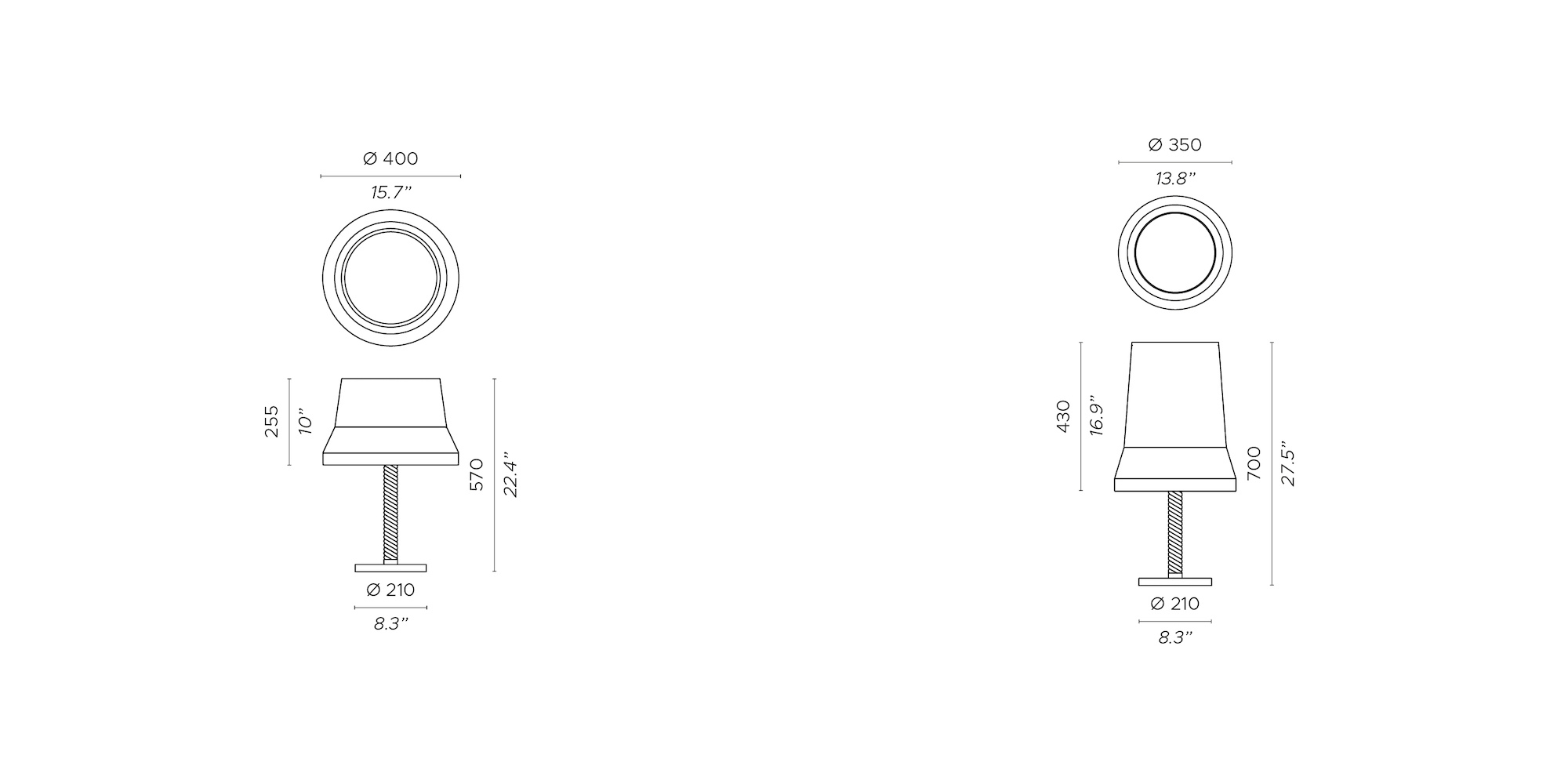 The Audrey collection, consisting of two table versions, floor and hanging versions, has been designed as a real style exercise. Three shades are connected with each other: cotton in the upper and lower part, San Color Bouclé fabric in the middle and new velvet finishes, available in different colors. LegAnd it is covered with braided silk string.