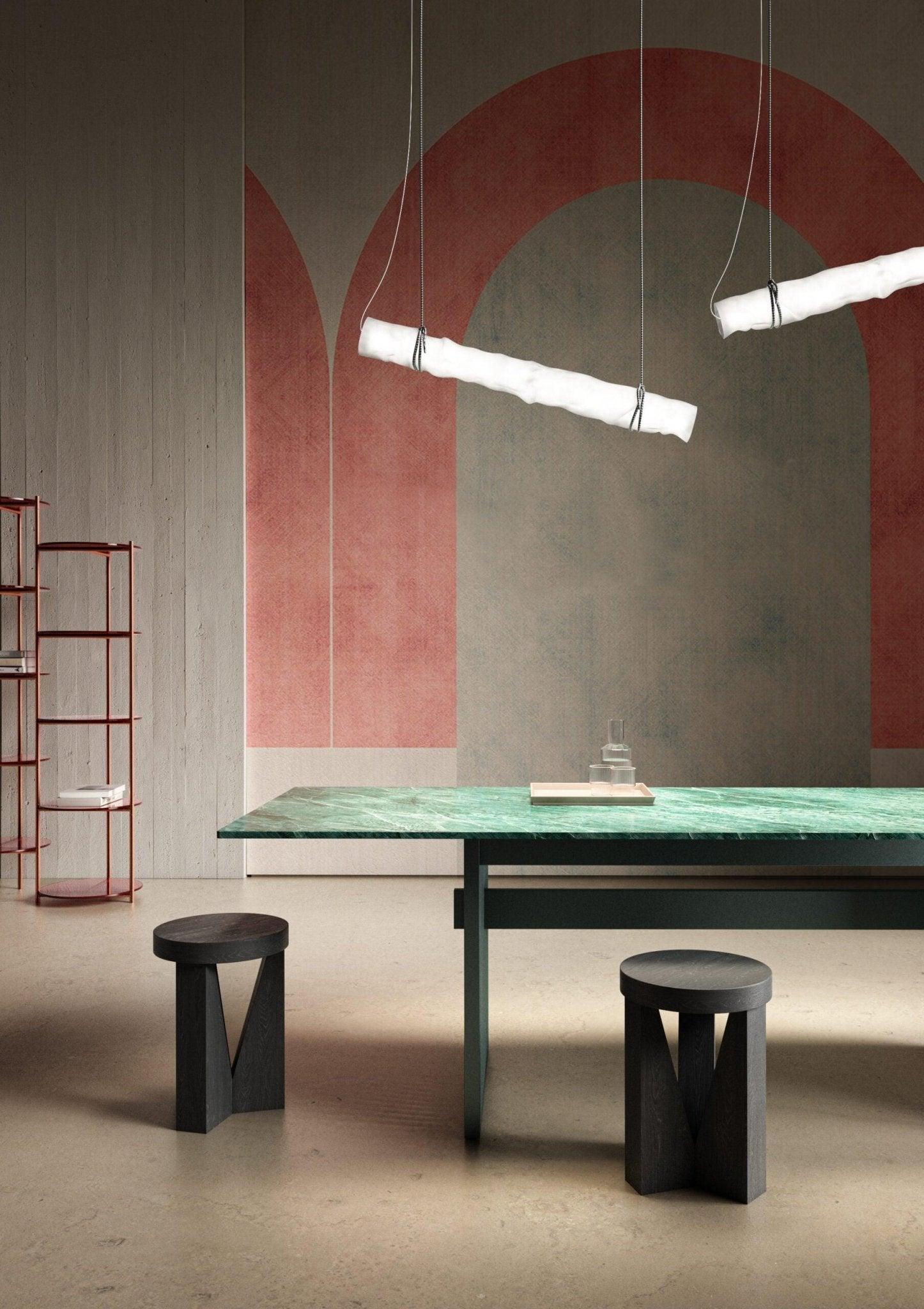 Hanging lamp Baggy Horizontal has a double satin diffuser of polycarbonate with an irregular appearance of a crumpled paper tube, and the base is in a gray finish. What Baggy does special is an organic shape, containing a non -standard LED, which emits light in a magical and unexpected way.