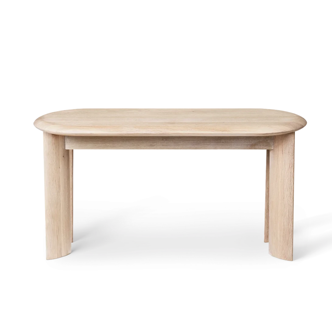 Bench Bevel in a bleached oak is a modern interpretation of a classic bench, characterized by wide, flat legs. Made of solid oak, it has slightly rounded edges, which perfectly harmonize with the design of the dining table from the same series. Thanks to its versatility, it is also perfect as an additional seat in the hallway, living room or bedroom, introducing subtle elegance to any interior.