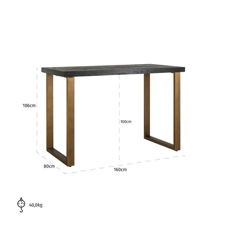 Unusual bar table Blackbone emanates timeless grace. Its rectangular top made of black, noble oak, beautifully arranged in a characteristic herringbone pattern, rests on a solid brass base. This subtle elegance makes the bar table an indispensable element of any dining room.