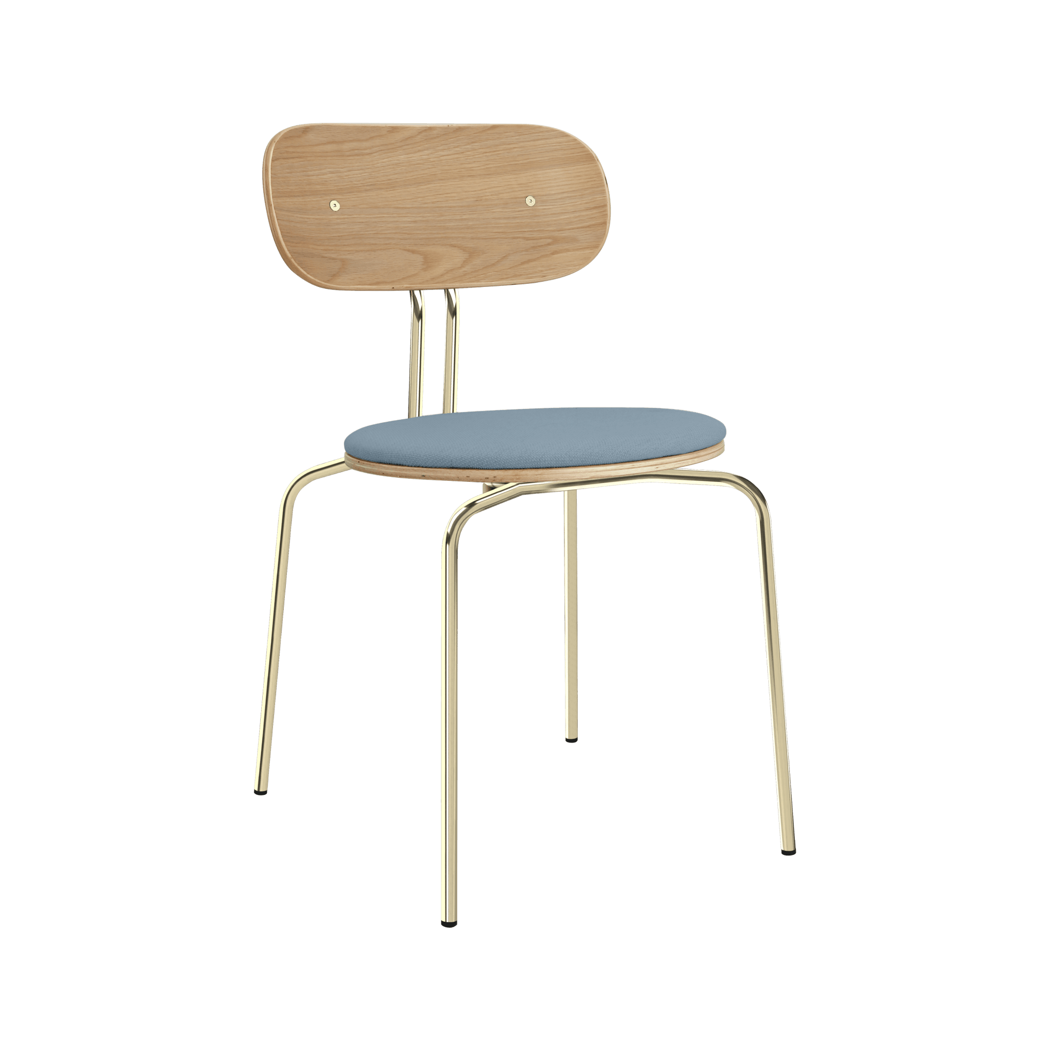 Chair Curious is elegant, light and minimalist furniture, made of oak veneer. It is available with brass or black legs, and the optional seat cushion provides additional comfort. You can choose a pillow from 17 colors of Horizons fabric, made 100% recycled, as well as in a brown or white shade of Teddy Bear fabric.