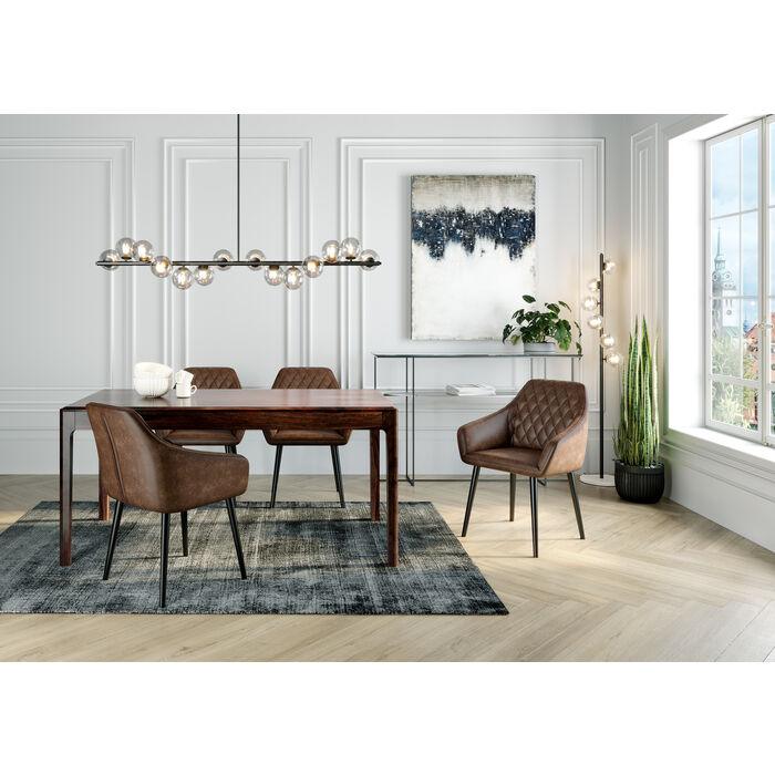 Rectangular table, large, made of high quality, dyed and varnished solid wooden wood, is intended for four up to six people. This is not only a beautiful dining room table, but also perfect as a large desk. Solid wood makes the table solid and durable. Live, individual wood jars are the hallmark of this type of wood and make each table unique. Perfect for a natural lifestyle, it looks great in combination with colorful chairs in shades of pistachio greenery, anthracite or pomegranate.