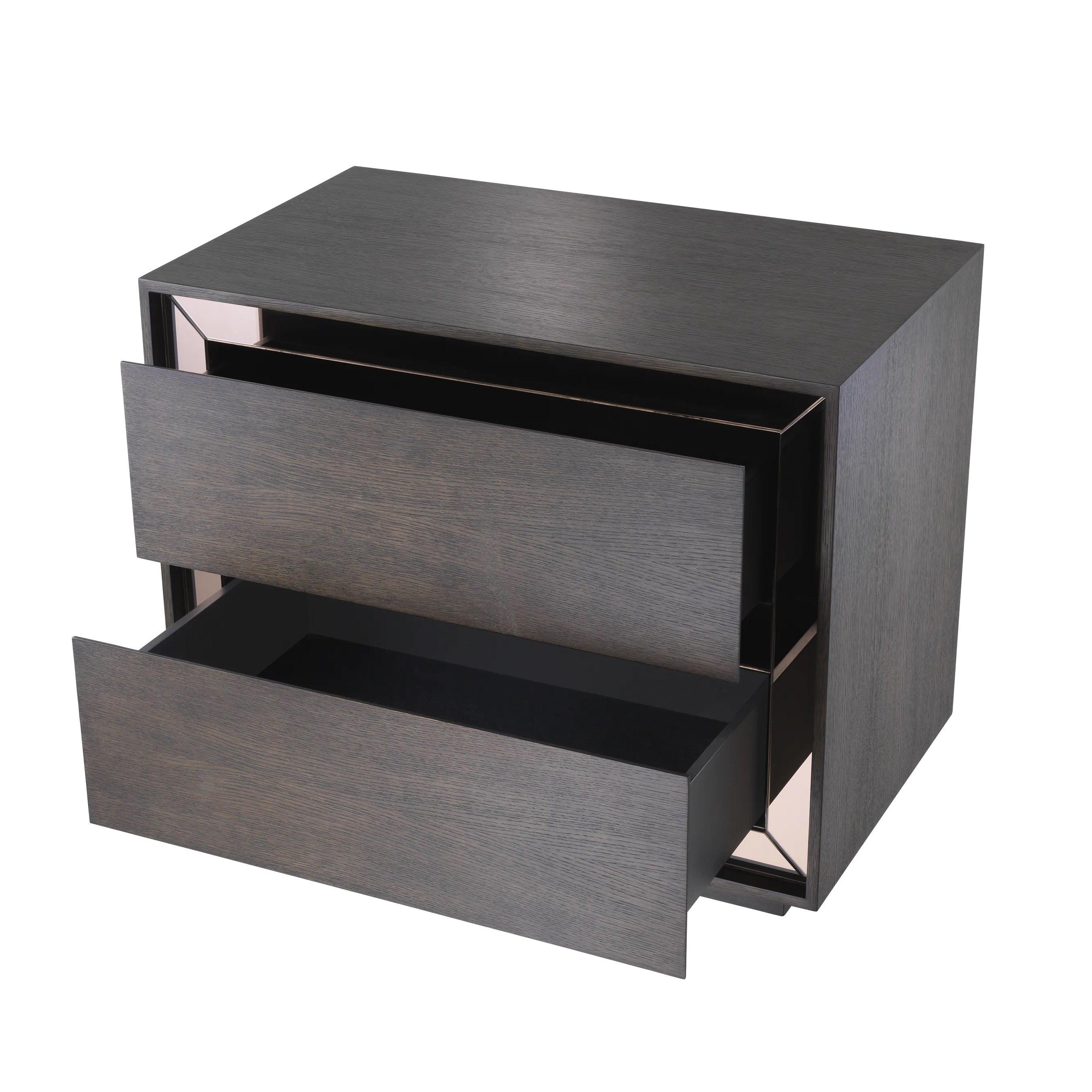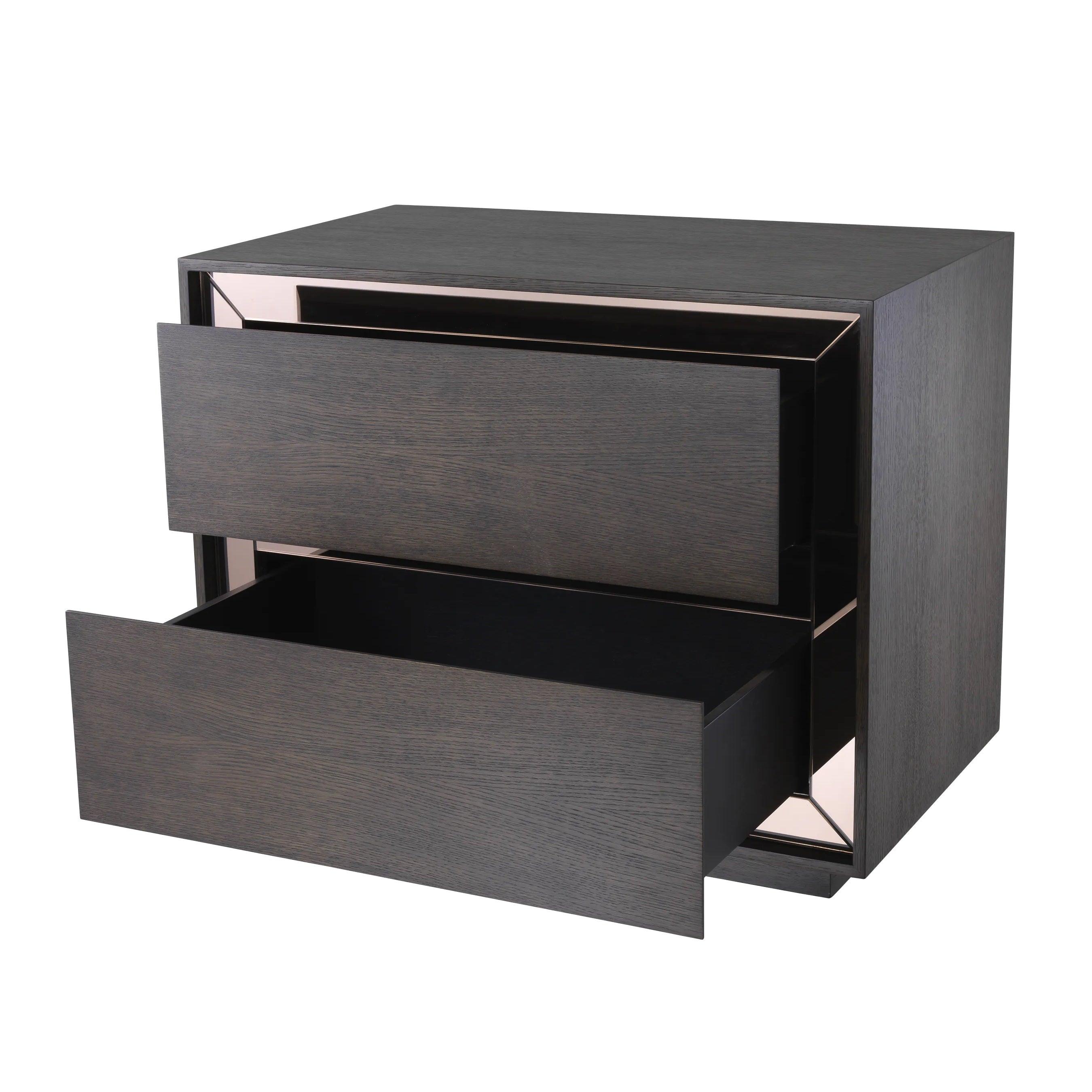 What's more, night table Cabas surprises with an intriguing contrast. The drawers are surrounded by a frame made of a brown mirror, which adds not only depth to the furniture, but also an elegant glow. The mirror finish reflects light, creating the impression of space and adding a unique character to the bedroom or living room. Brown table Cabas is not only a practical element of equipment, but above all an expression of care for details and the desire to create a full -class interior. It is a piece of furniture that will certainly catch the eye and become the focal point of any room.