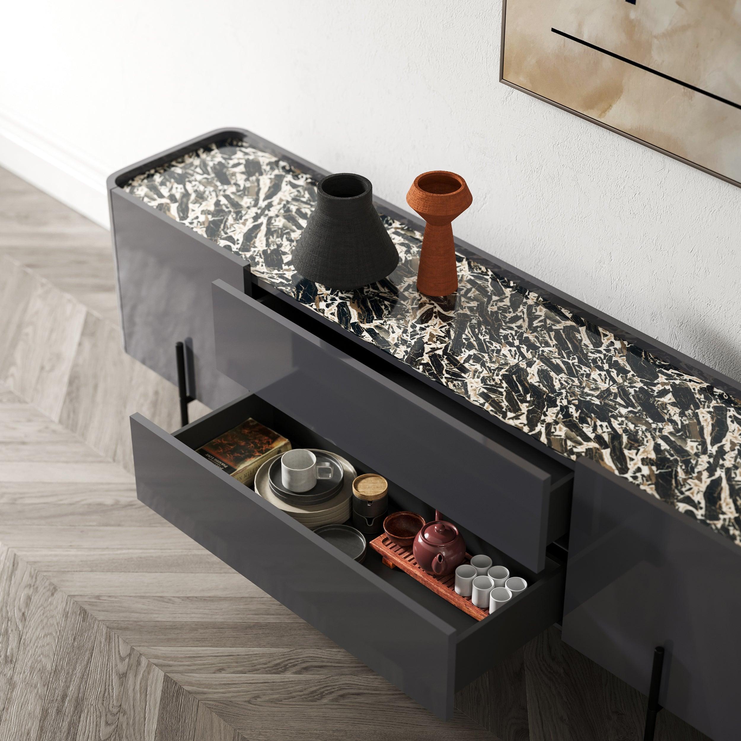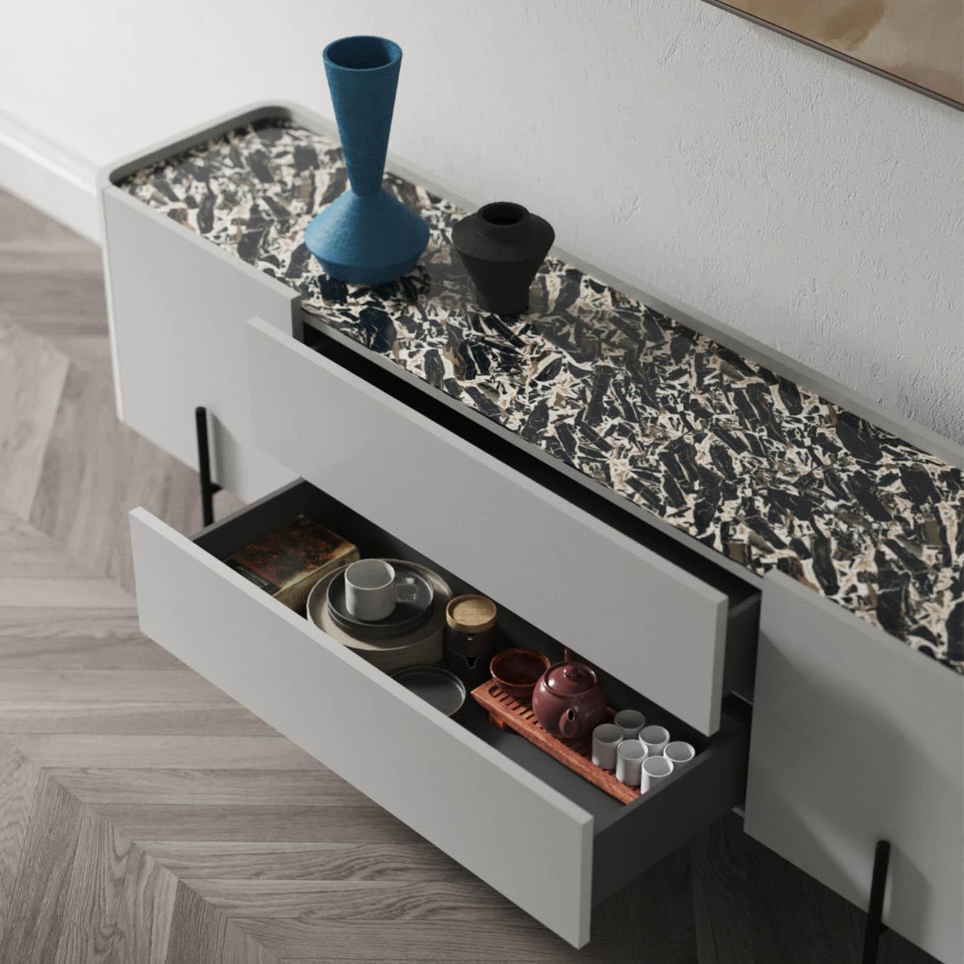 Discover the excellent combination of functionality and aesthetics in Caillou drawers cabinet. His rounded shapes, the choice of countertop and unique details make it not only a practical furniture, but also a beautiful work of art. Allow yourself a luxurious accent in your interior and enjoy the harmony between the form and function.