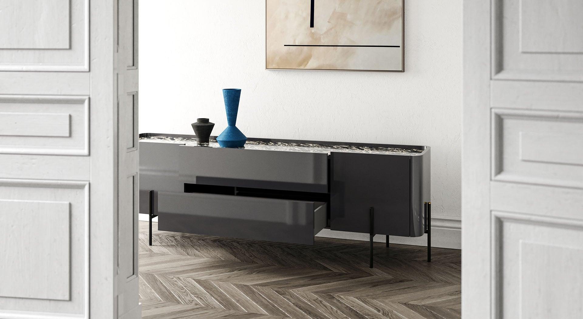 Caillou drawer cabinet This is a perfect combination of rounded shapes and a solid metal structure that create a valuable detail, emphasizing the unique aesthetics of this furniture. Equipped with central drawers, the Caillou cabinet expands the positioning possibilities in various rooms of the house, providing a practical and elegant storage solution.