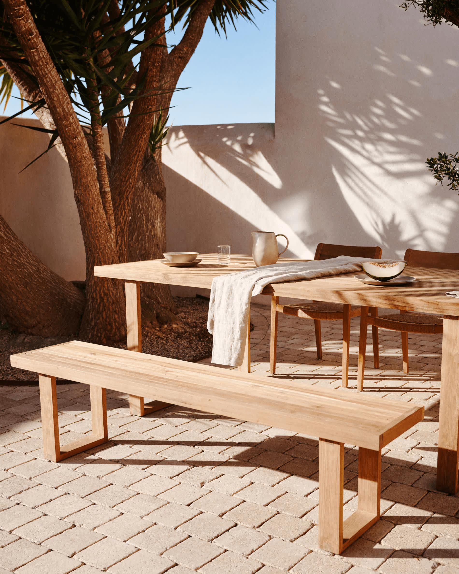 Teke wood, used for production benches Canadell, comes from recycling, which makes it an ecological and balanced choice. Its natural resistance to weather conditions guarantees durability and reliability, allowing you to enjoy it without restrictions for many years.