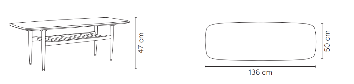 One of the characteristic elements of this table is a light shelf placed under the countertop. This subtle and minimalist design refers to the most outstanding retro projects, while adding undeniable vintage charm. The shelf not only has a practical function, enabling storage of small items or decorations, but also gives the table a unique character.