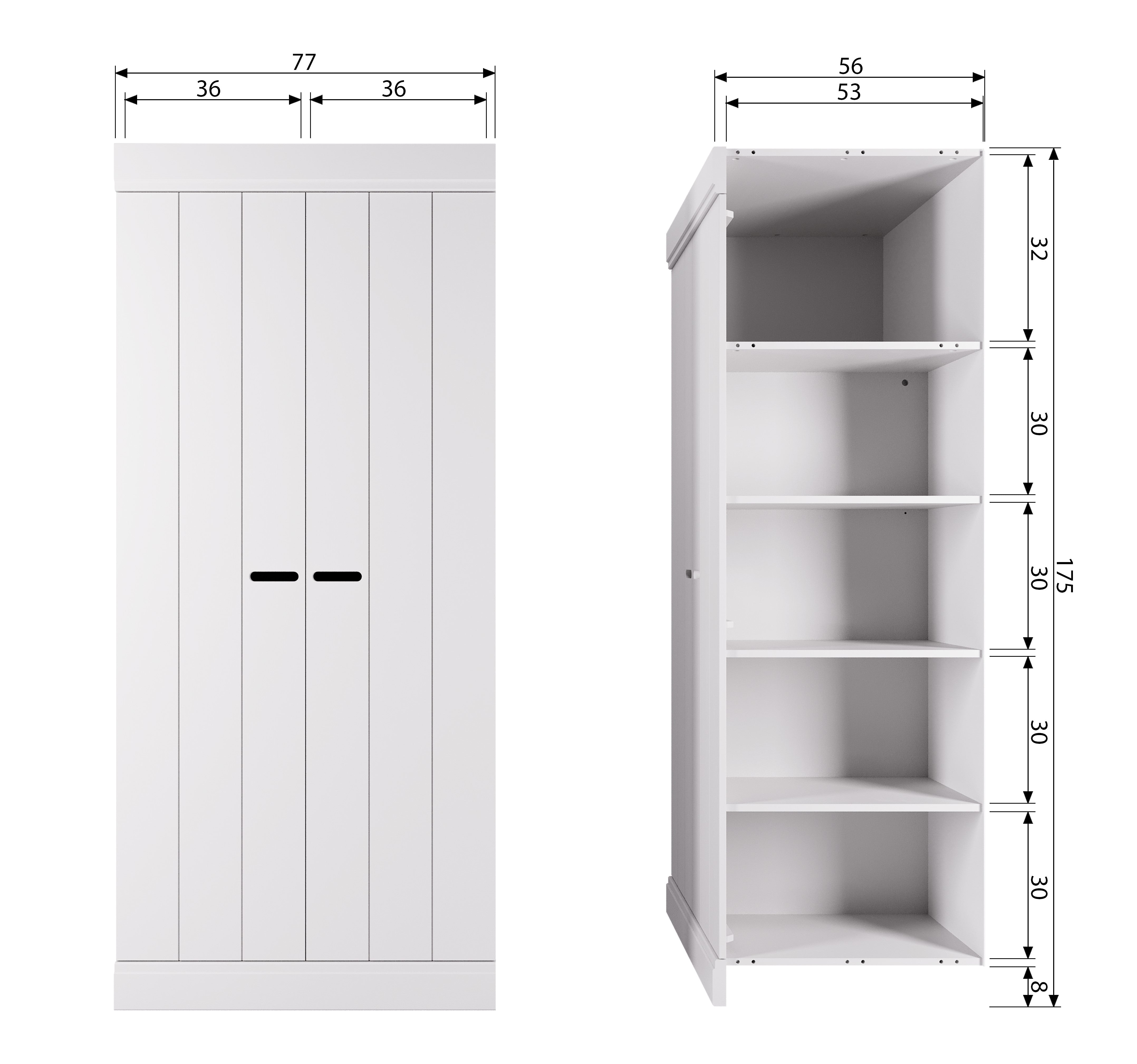The small size of the Connect wardrobe makes it the perfect choice for small bedrooms, guest rooms or multi -functional rooms. Thanks to its universal white and minimalist design, this wardrobe will be a great addition to any interior, emphasizing its character and adding a little Scandinavian simplicity.