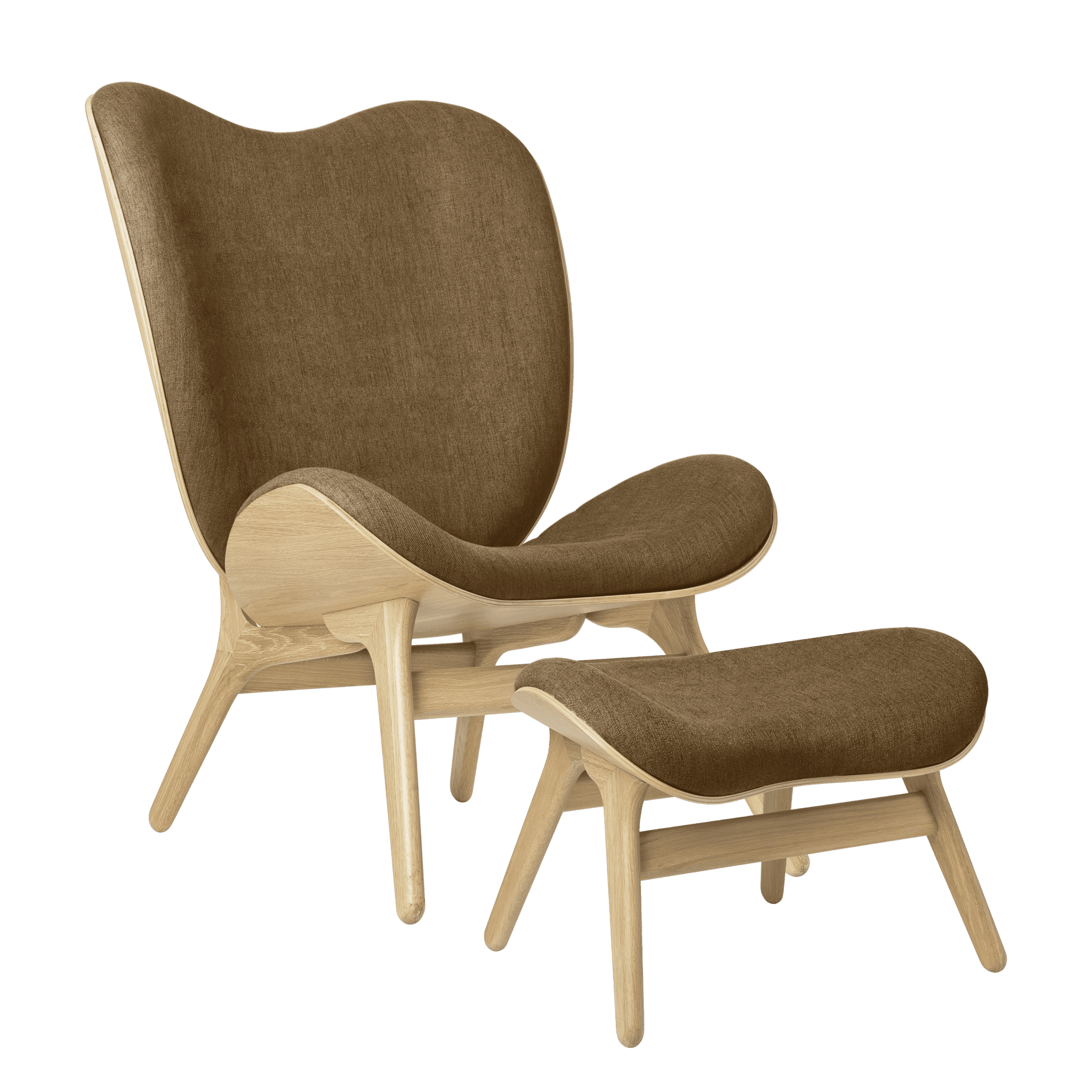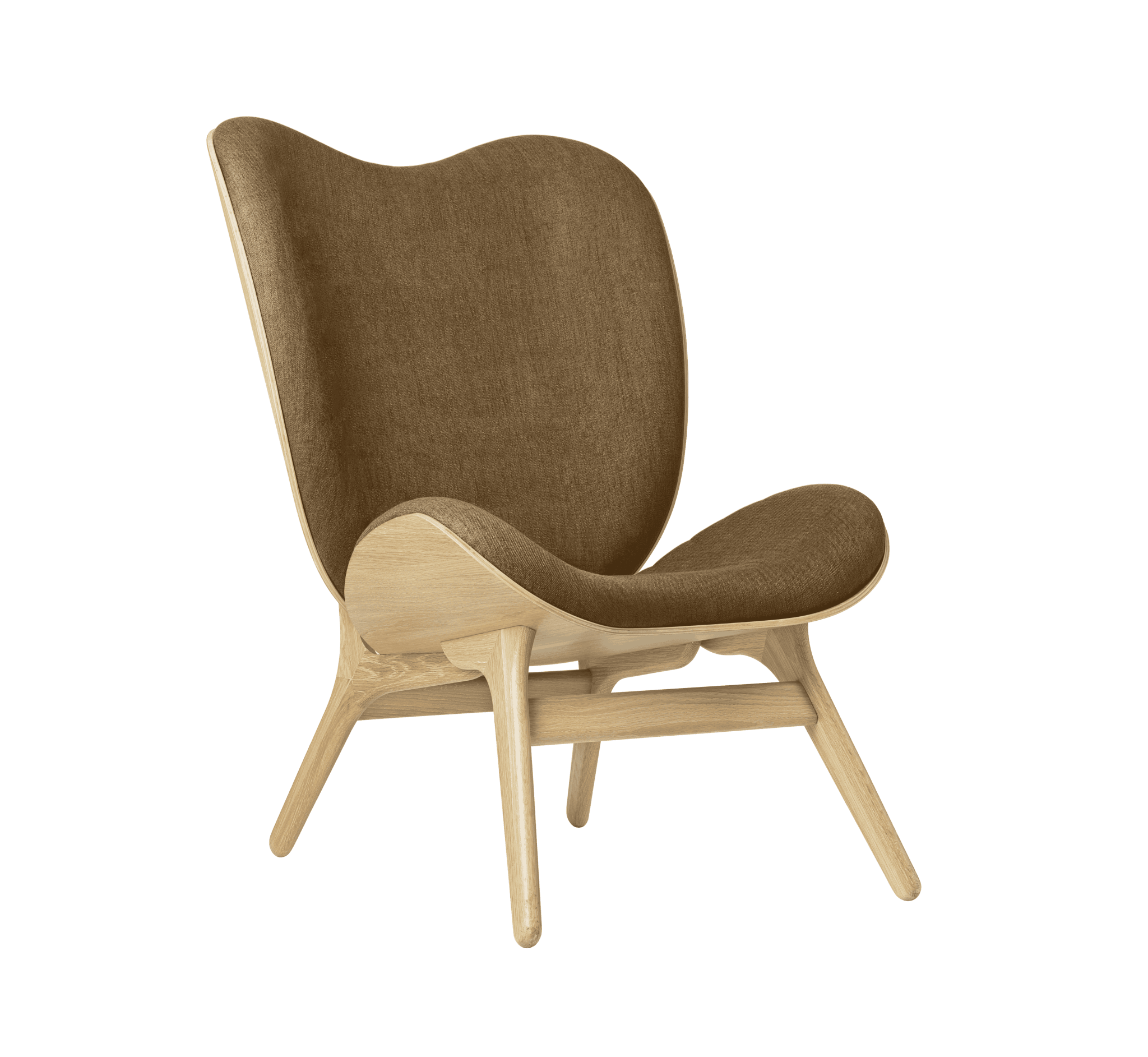 Armchair Conversation Piece Tall is available in oak, dark oak and black oak, in eight carefully selected shades of Horizons fabric, made entirely of recycled materials, as well as in two colors of Teddy Bear fabric.