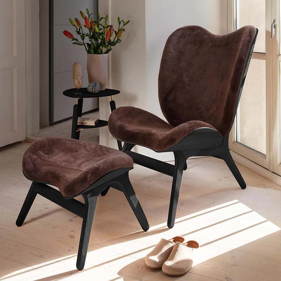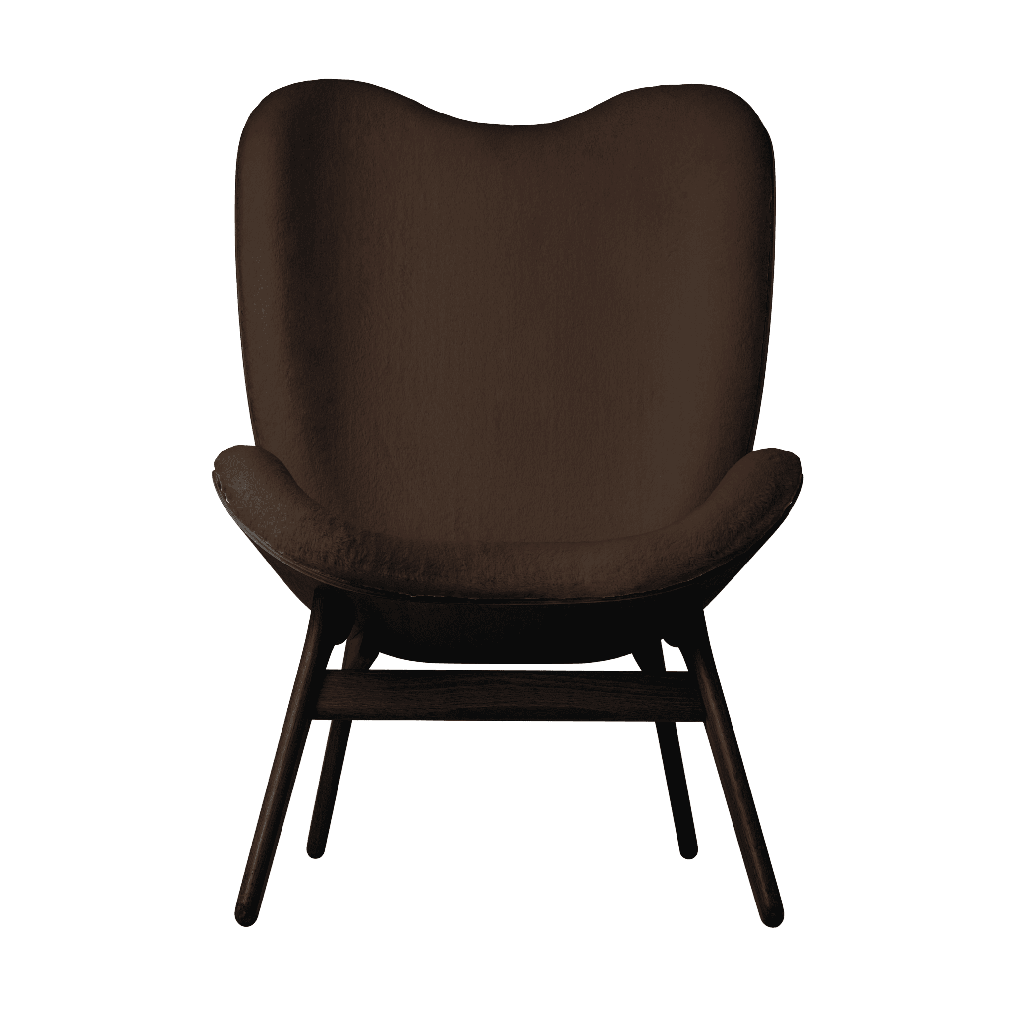 Armchair Conversation Piece Tall is available in oak, dark oak and black oak, in eight carefully selected shades of Horizons fabric, made entirely of recycled materials, as well as in two colors of Teddy Bear fabric.