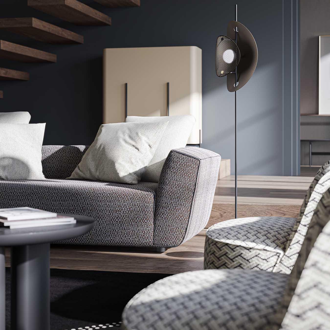 This modern lamp Floor is distinguished by its design, which focuses on important lines and minimalism. Its sophisticated character goes perfectly with different interior styles, adding them a modern and elegant accent.