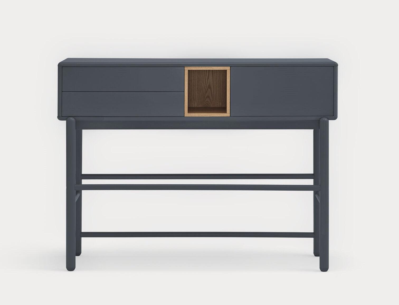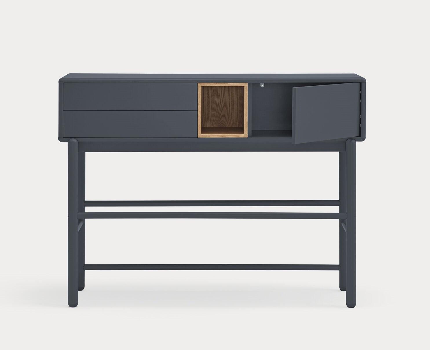 Console Corvo in anthracite color is an interesting combination of a minimalist shape with many storage planes. The project was aimed at creating a functional furniture that would bring a breath of freshness and modernity to the interior.