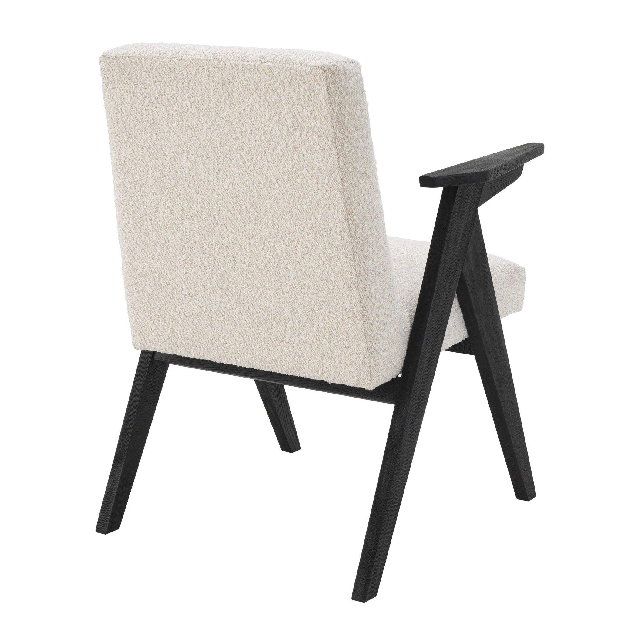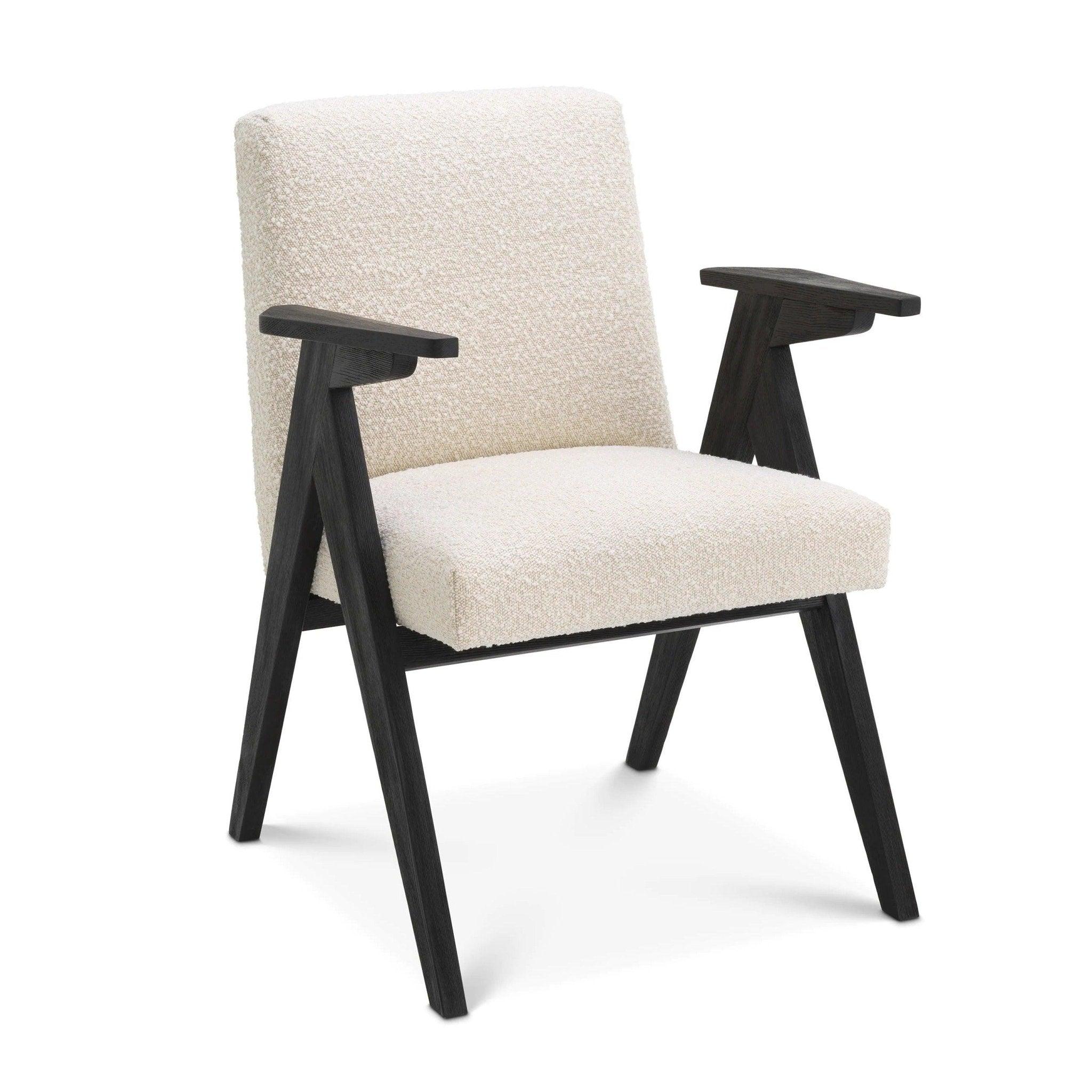 When you add chair Bobo for your interior, you will understand how much difference is able to make a high -quality seat. At the first look you can fall in love with this extremely sophisticated chair, which seems to be the result of romance between modern minimalism and classic elegance. The contrasting black wooden frame creates a fascinating combination with the delicacy of Bouclé cream upholstery, making Bobo as comfortable as aesthetic.