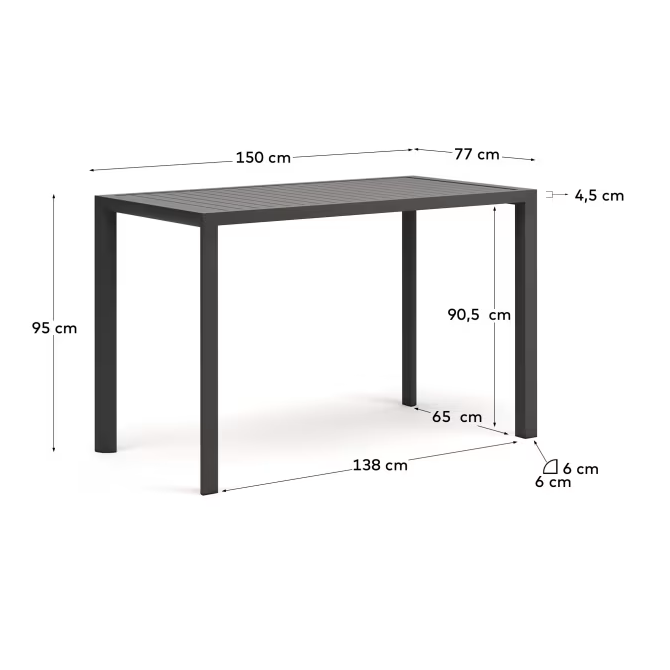 Garden Bar Table Culip is a modern bar table that is perfect for arranging your terrace, garden, or poolside area. Made from 100% aluminum with an elegant gray finish, the garden table combines lightweight construction with high resistance to weather conditions. Its minimalist design and universal color scheme make the garden bar table Culip the centerpiece of summer gatherings.