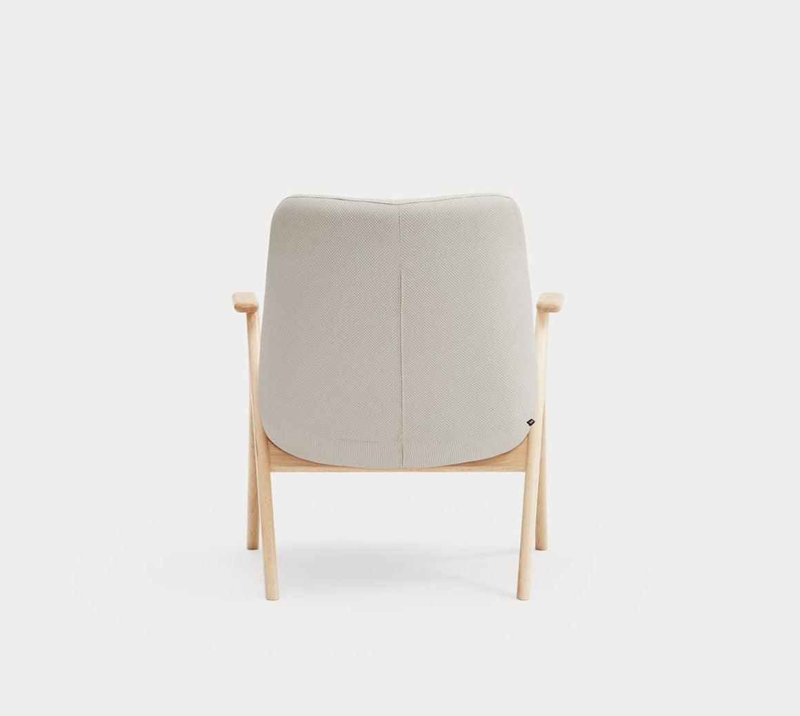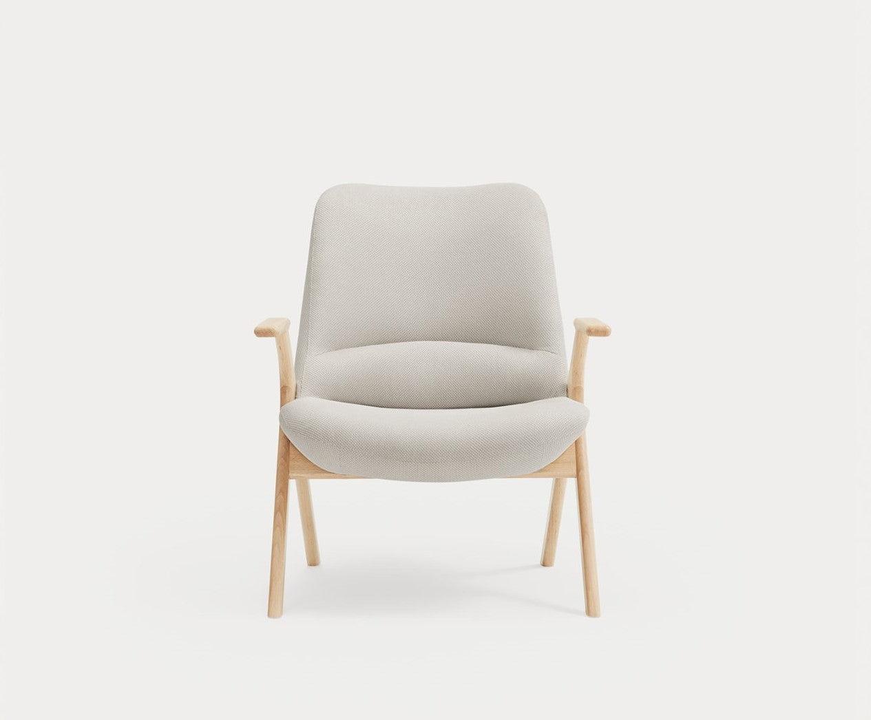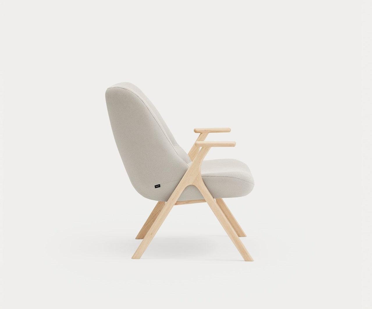 Armchair Dins in a cream color is a piece of furniture that combines two opposing concepts that coexist in the harmony of proportion. The delicacy and warmth of the wooden Dins chair structure are fully integrated with a spacious upholstered body.