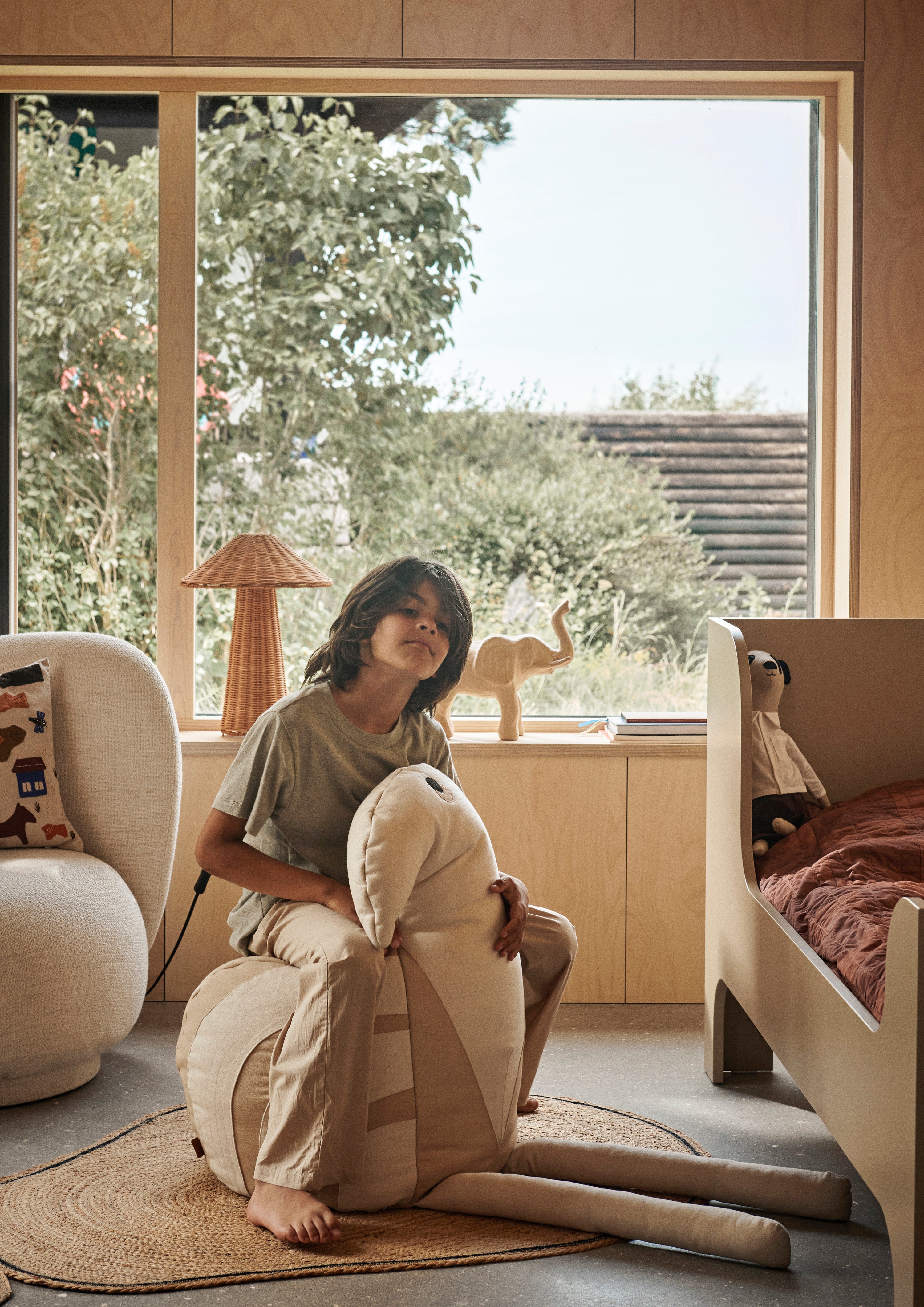 Table lamp Dou, hand -woven of natural rattan, emphasizes the beautiful contrast between geometric forms and organic, texture texture of the material. It emits a soft, cozy light, and the braided lampshade subtly passes the rays, adding a unique texture and heat to the interior.