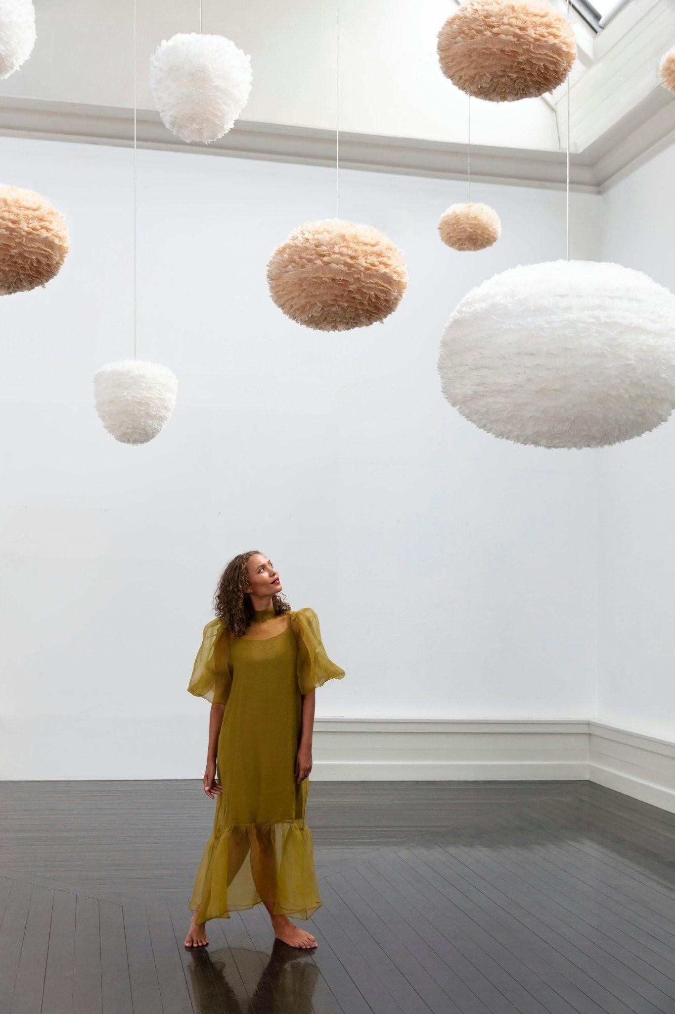 Shade EOS Evia in white is not only lighting, but also a work of art inspired by Greek mythology. The name 'EOS' comes from the goddess of dawn, which refers to the delicate appearance of the lampshade, reminiscent of clouds in the sky.