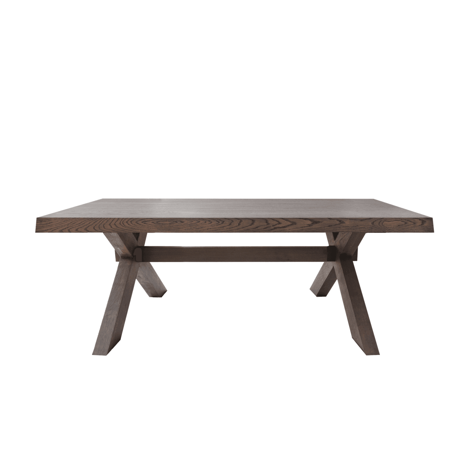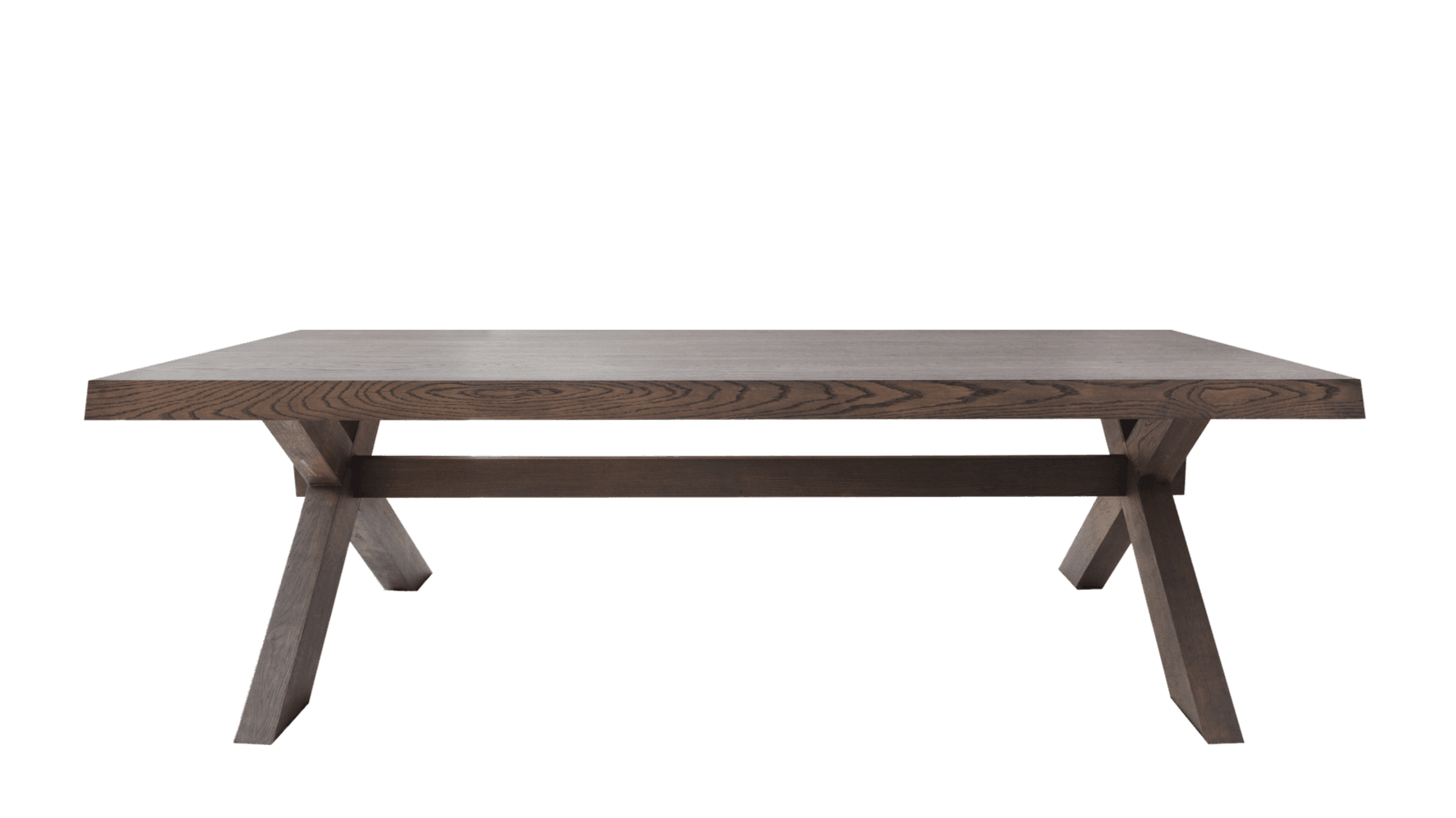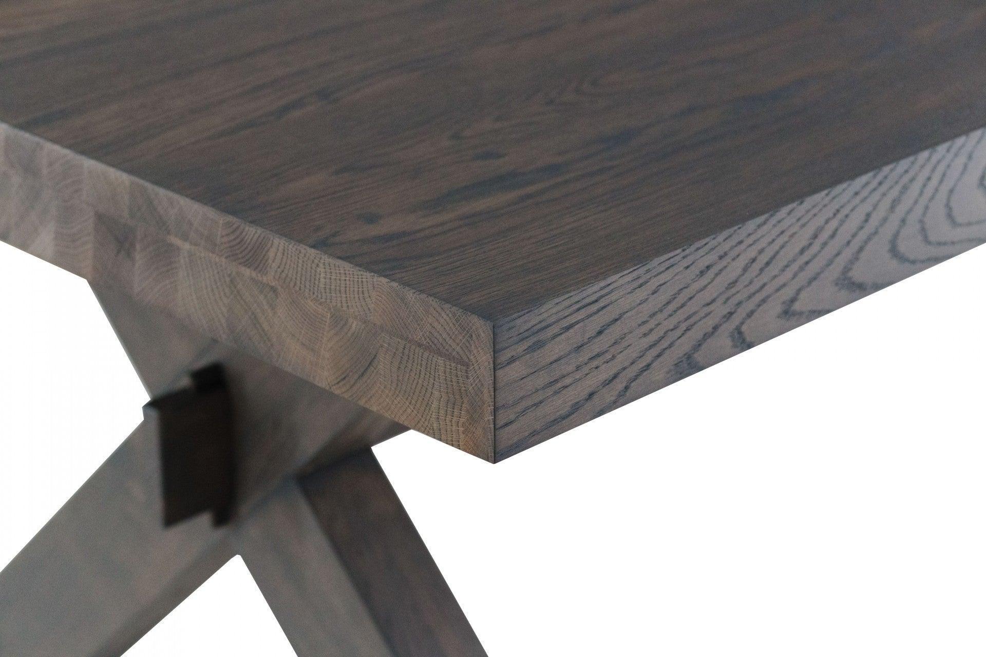 Table The farm was designed for lovers of crossed legs in the tables. The uniqueness of this model is emphasized by Łączyna bonding both legs with a wedge connection. The thickened tops of 80 mm thick have cut sides at a slight angle, which gives them elegance and subtle lightness.