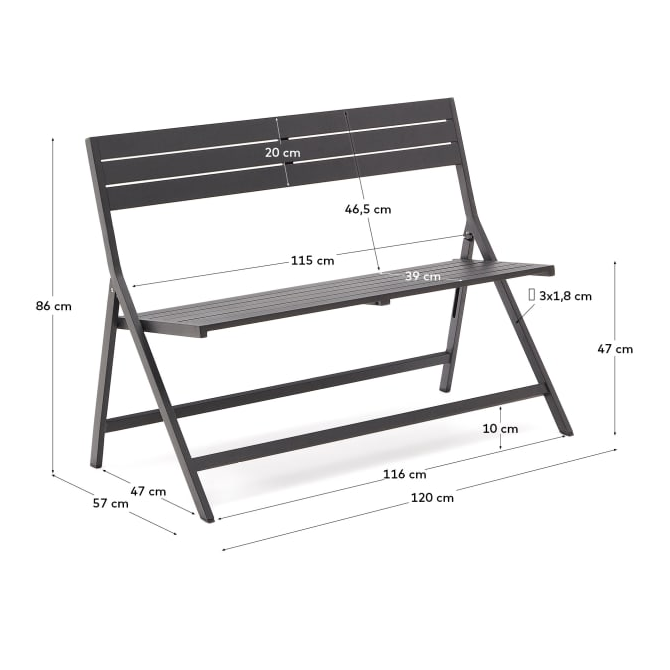 Discover the unique functionality and practicality folding bench Torretta, ideal for use in small spaces outside, such as your terrace. Made of light aluminum, the torreta bench is not only durable, but also perfect for relaxation in the sun, ensuring unparalleled comfort.