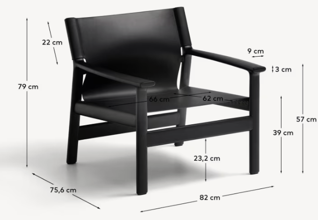 JAN armchair in black recycled leather with black ash wood