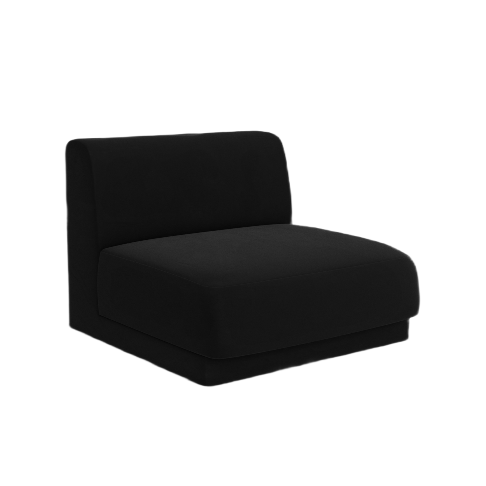 Middle modular element of the sofa in Bluvel velvet combines durability, functionality, and timeless design, making it an ideal component of a larger composition or an elegant standalone accent in a modern interior.