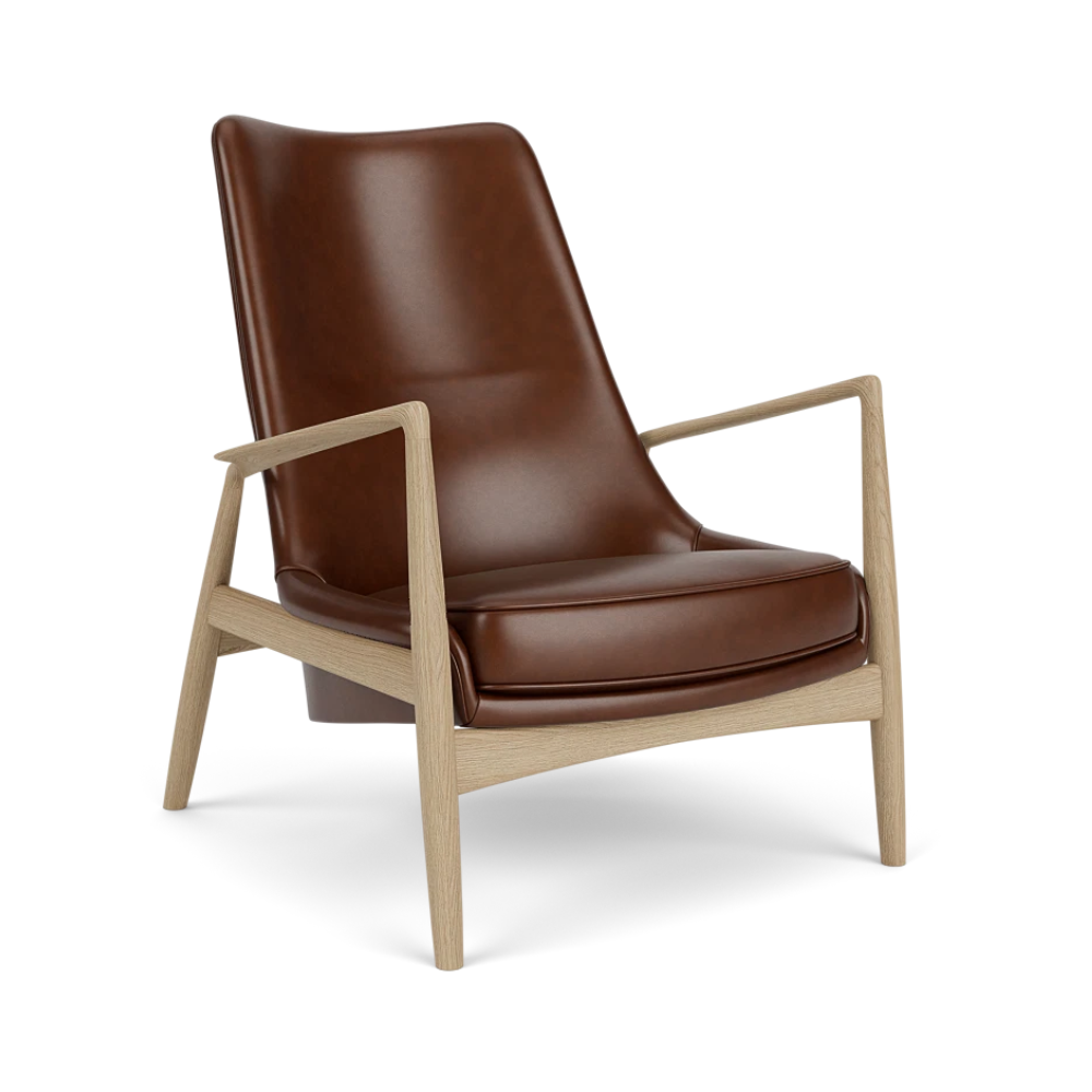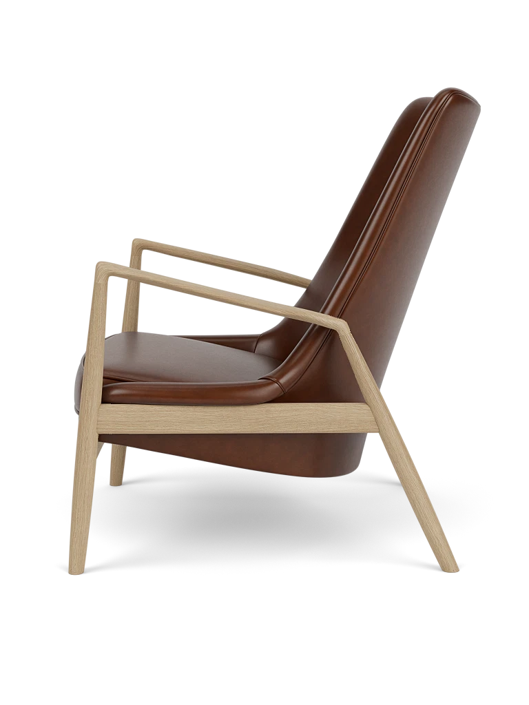 Fotel z wysokim oparciem The Seal to jeden z najbardziej rozpoznawalnych projektów Ib Kofod-Larsena, stanowiący kwintesencję elegancji i ponadczasowego stylu. Jego charakterystyczna, lekko pochylona rama oraz szerokie podłokietniki zapewniają wyjątkowy komfort, a organiczna forma i dopracowane detale nadają mu rzeźbiarski charakter.