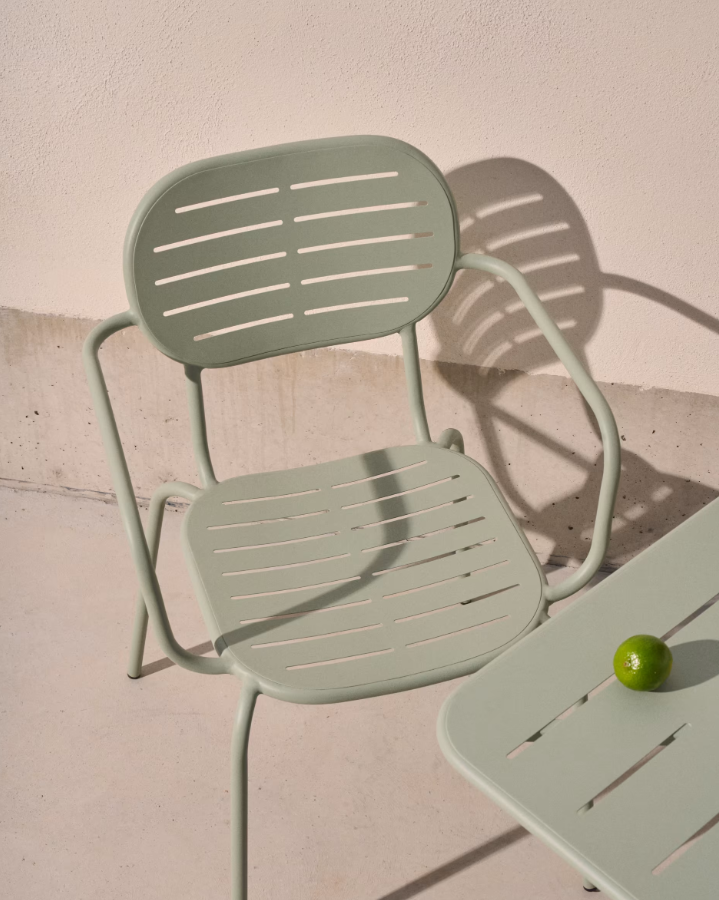 Brai it Garden chair with armrests, which impresses with the simplicity of form and solid performance. Made of galvanized turquoise steel, it is resistant to rust and corrosion, which ensures its durability in external conditions. The possibility of stacking makes the chair extremely practical and easy to store.