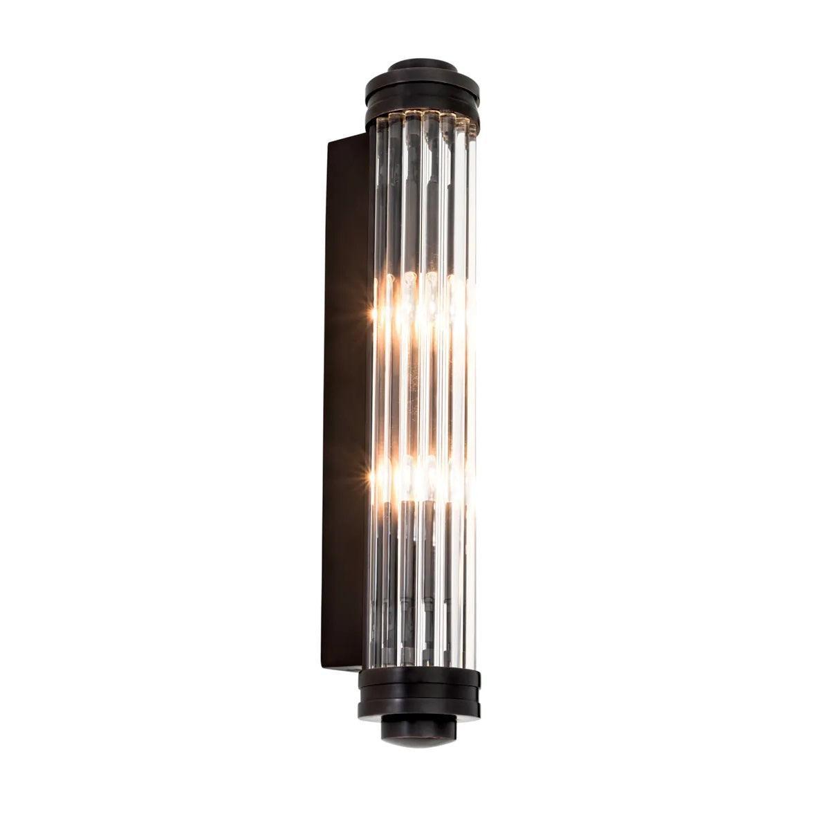 Wall lamp Gascogne is a unique way to immerse your interior in a soft and warm glow. This lamp with a lampshade Made of ribbed and chapted transparent glass, it is a tribute to the aesthetics of theater lamps in the style of Art Deco, which makes your interior gain cosmopolitan style and glow.