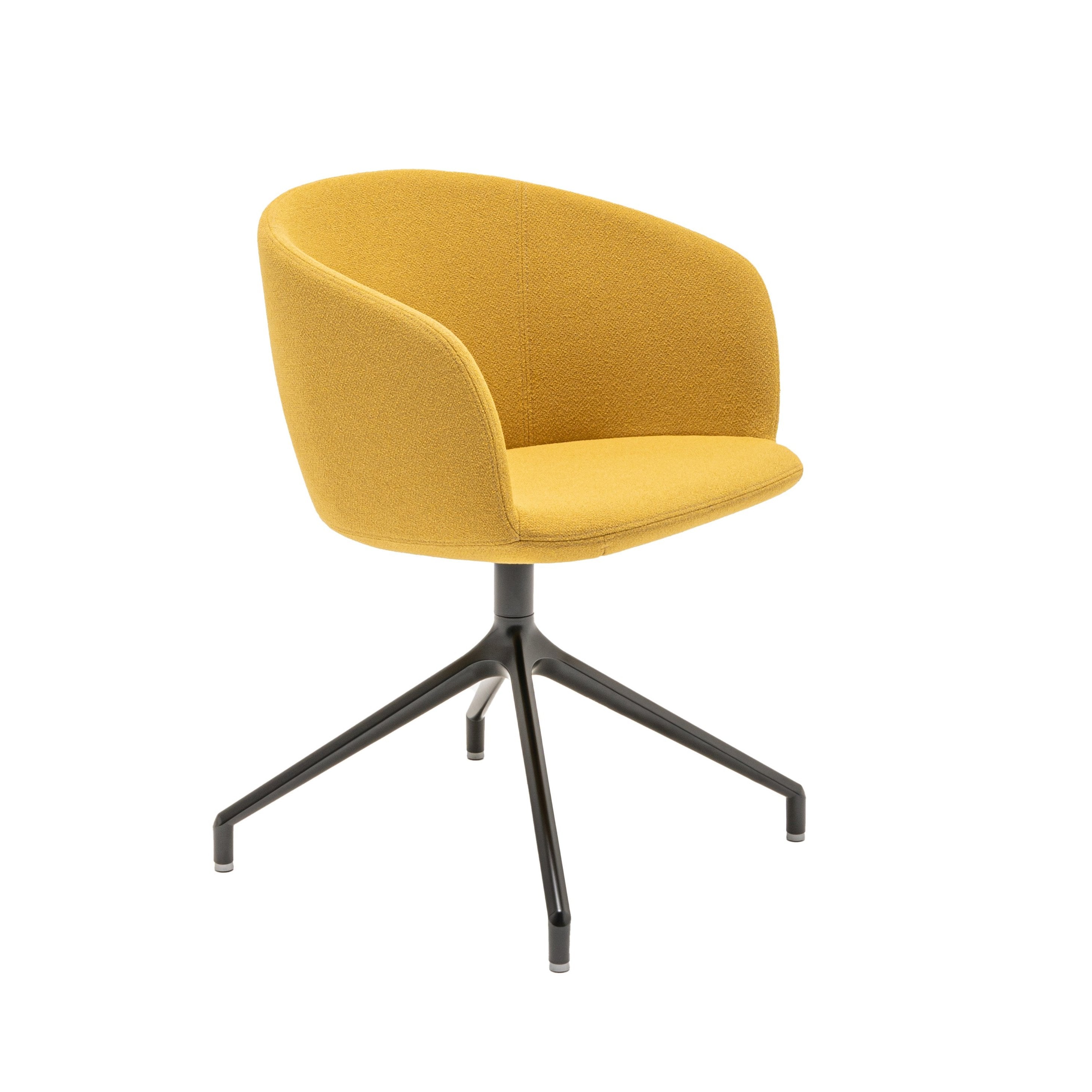 Swivel chair Grace with an aluminum base is an ideal solution for modern office, conference and public spaces. The elegant upholstered seat inspired by club chairs combines comfort with aesthetics, and the cast aluminum base, available with the option of wheels, increases the mobility of the user, which makes it easier to move the chair. The combination of classic form and modern materials makes it chair Grace perfectly fits into demanding interiors, while ensuring reliability and comfort.
