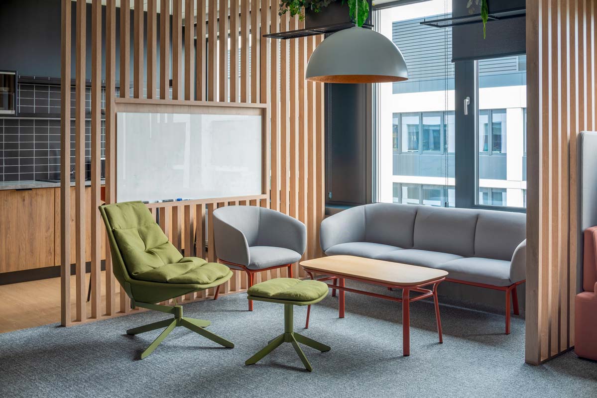 Coffee table Grace with a veneered top is an elegant element of equipment, created for stylish office spaces. Its subdued colors give it a universal character, thanks to which it perfectly fits into both modern and classic arrangements. The rim under the countertop and bent legs refer to the design of upholstered furniture from the Grace collection, enabling the creation of a coherent rest zone.